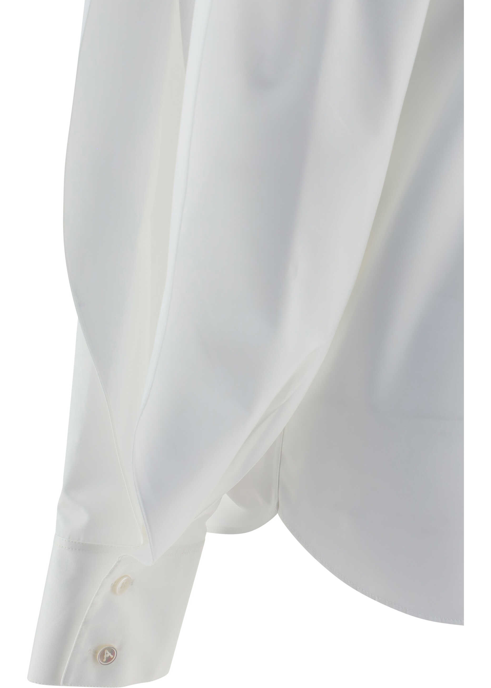 Cotton Shirt by Alaïa, voluminous balloon sleeves, loose fit, classic collar, front button closure, monochrome pattern, narrow cuffs.