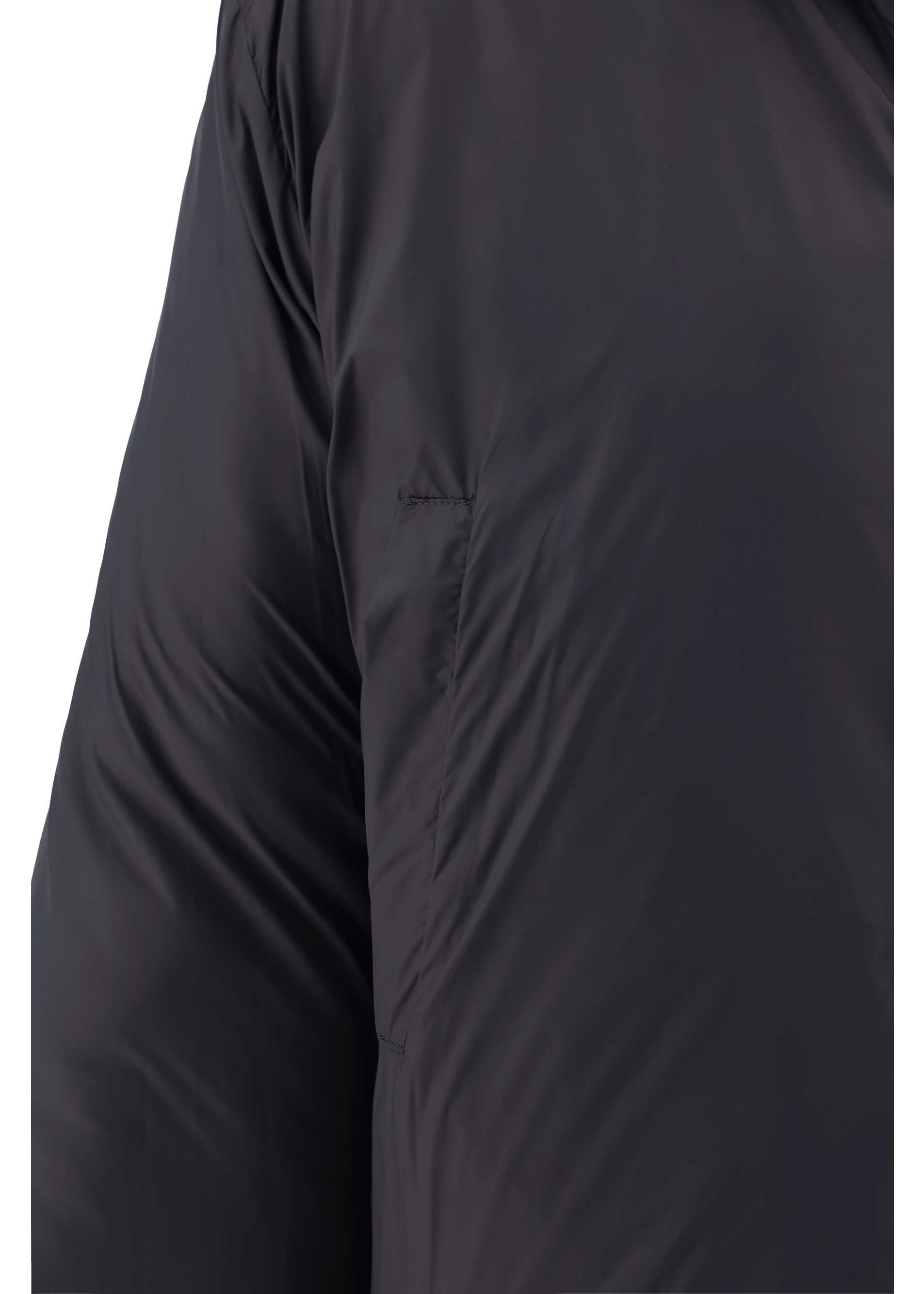 Wool Last Reversible Jacket by P.A.R.O.S.H., ribbed high collar, front zipper closure, two side welt pockets, padded design and all-over quilting, monochrome pattern, regular fit.
