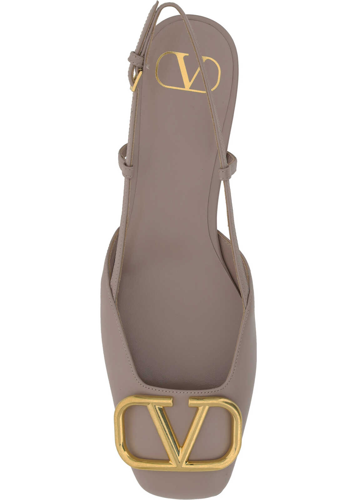 Calfskin VLogo Ballerinas by Valentino Garavani, square toe with three-dimensional iconic VLogo brand plaque applique, adjustable slingback with buckle closure, press-studded logo insole.