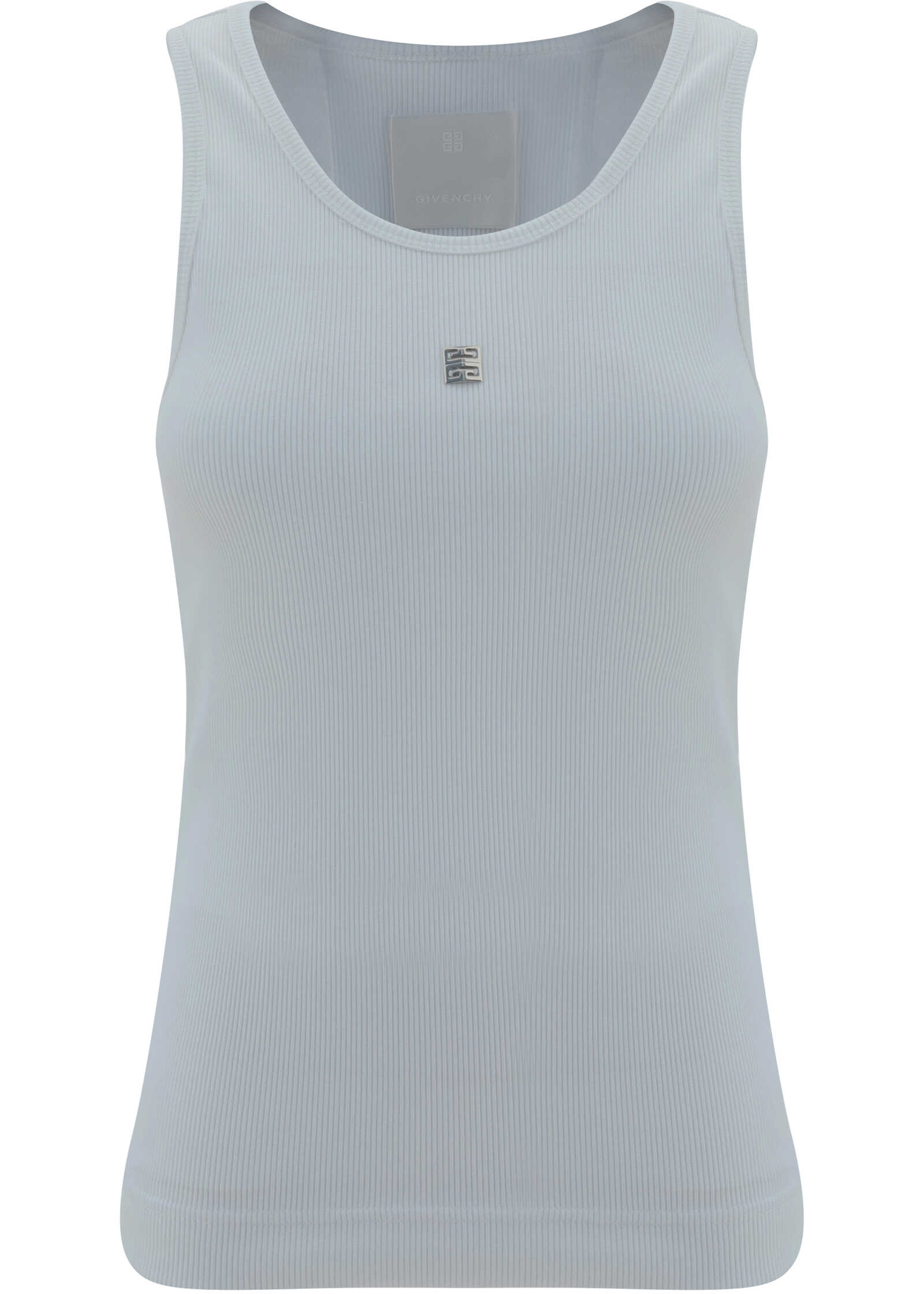Cotton Tank Top by Givenchy, a round neckline, a monochrome all-over ribbed design, a plaque with the brand's iconic 4G logo embossed on the front, and a regular fit.