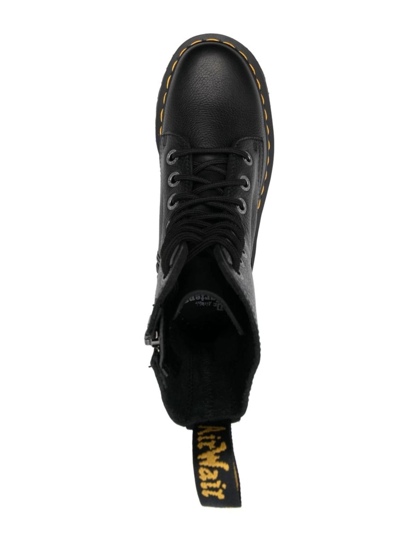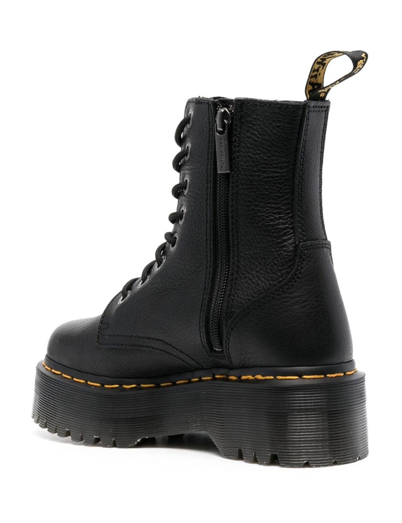 Set atop a platform sole, Dr. Martens brings back their signature Jadon silhouette, which riffs on the Original classic. Crafted from black Pisa leather, which leaves a waxy finish; these ankle boots fasten with a side zip closure and feature the label's signature yellow stitching.