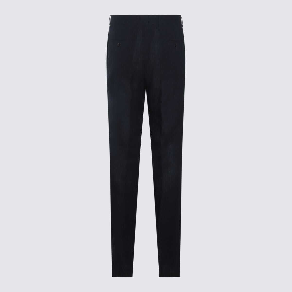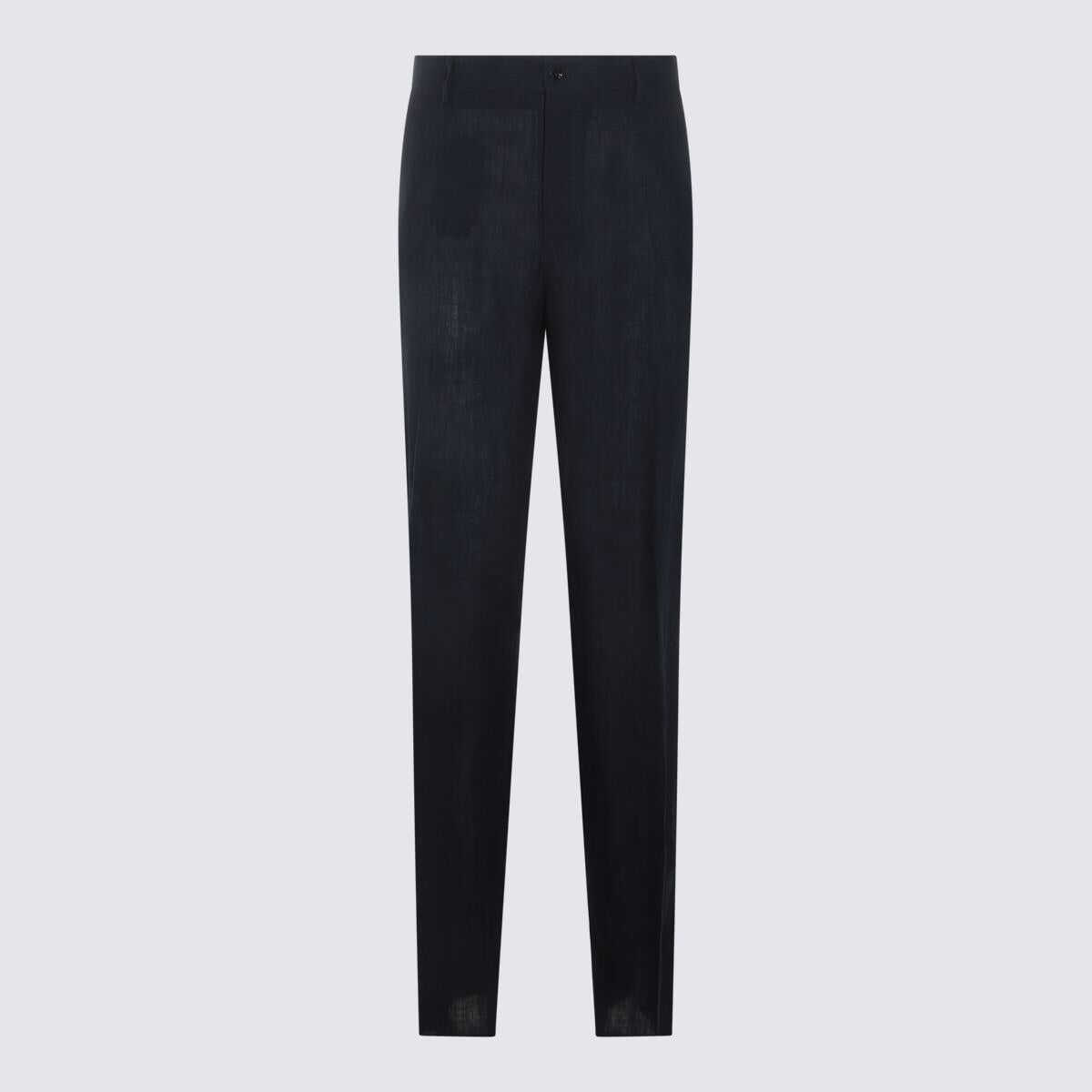 Navy blue linen pants from Dolce & Gabbana featuring belt loops, front button and zip fastening, wide leg, slight flare, two side pockets and two rear pockets.