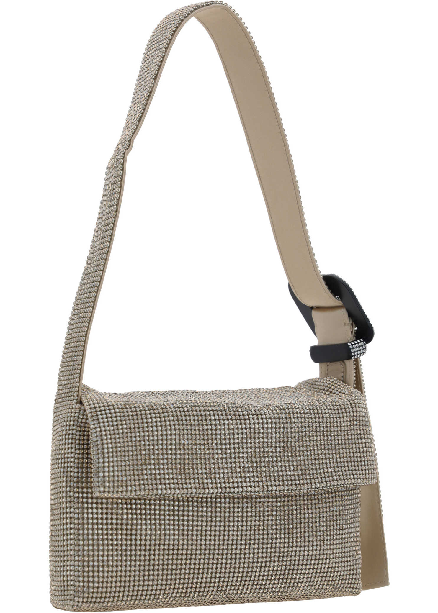Vitty La Mignon Shoulder Bag by Benedetta Bruzziches, design with all-over crystal rhinestones, single handle embellished with crystal buckle, top flap, zip fastening, silk satin design inside, leather brand logo plaque inside.