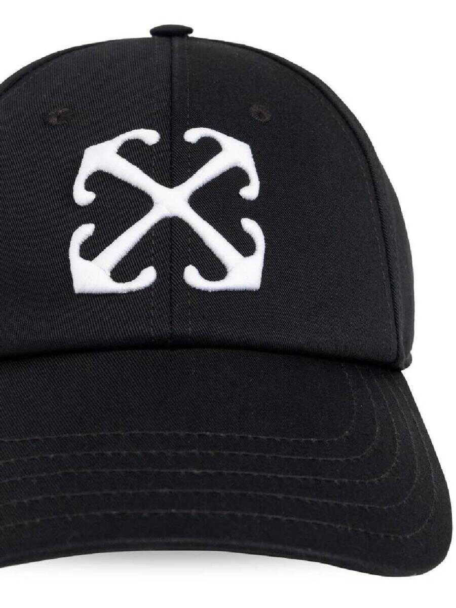 black cotton signature Arrows motif embroidered logo to the front six-panel construction eyelet detailing fabric-covered button at the crown curved peak adjustable strap to the rear