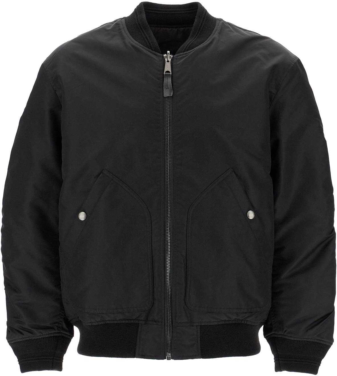 The Diesel J-Held Bomber is made from recycled technical fabric and features reversible design. It is padded and decorated with a tonal embroidered Oval D logo on the back. The bomber has ribbed edges, snap button pockets on both sides, a two-way zip closure, and elasticated and gathered stitching along the sleeves. Its fit is relaxed. The model is 187 cm tall and wears an IT size 48.