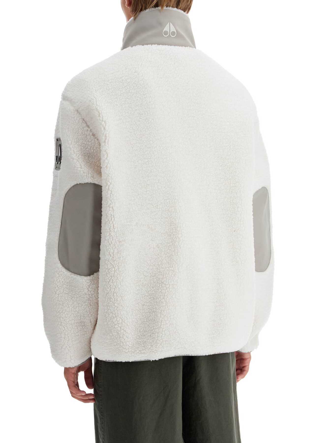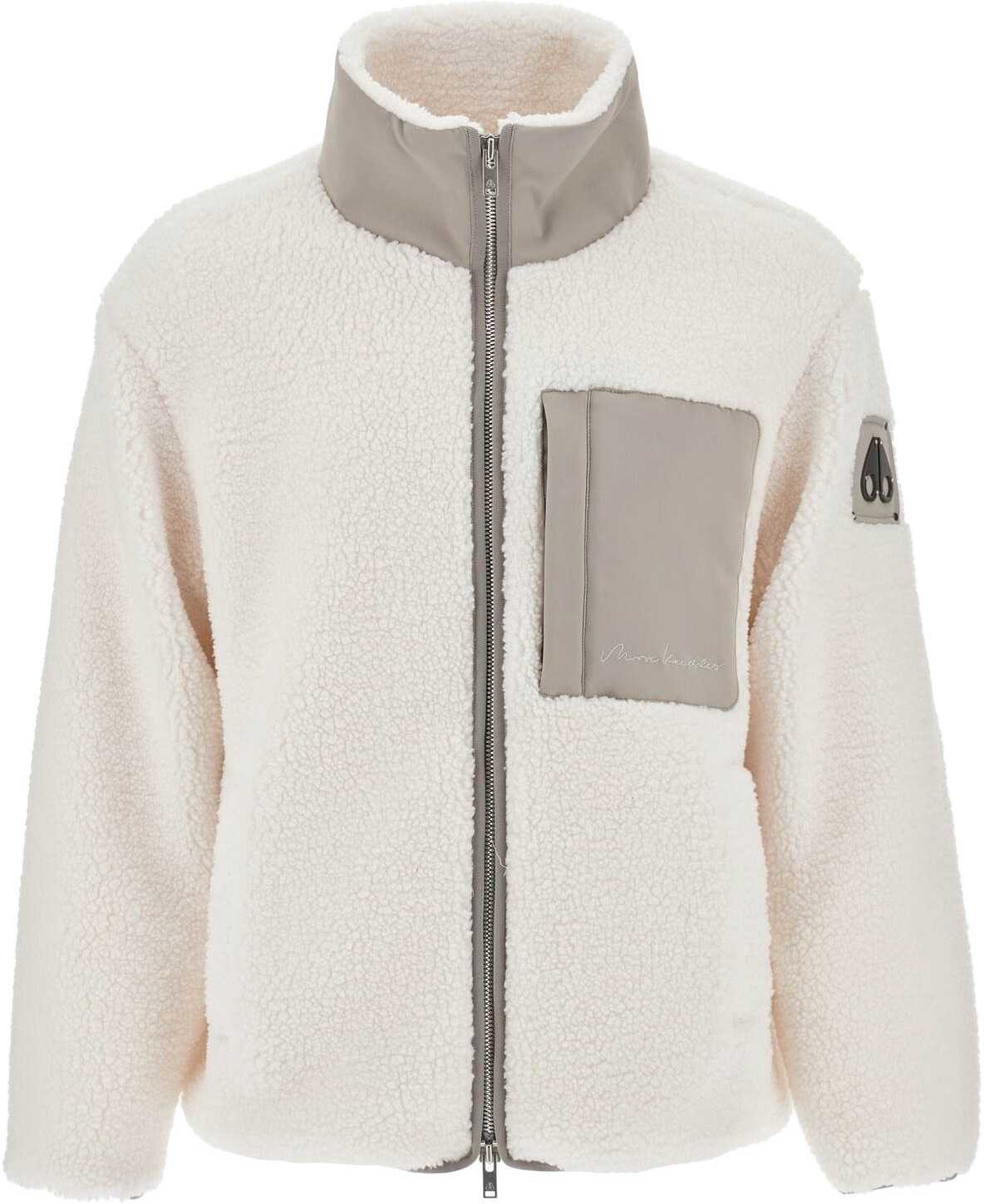 The Moose Knuckles jacket is made of faux fur and features slanted pockets and one zip pocket on the chest, adorned with tonal embroidered logo lettering. It has a double-slider zip closure, high collar, elasticized edges, and a metal logo applied on the left sleeve. The fit is relaxed. The model is 187 cm tall and wears size L.
