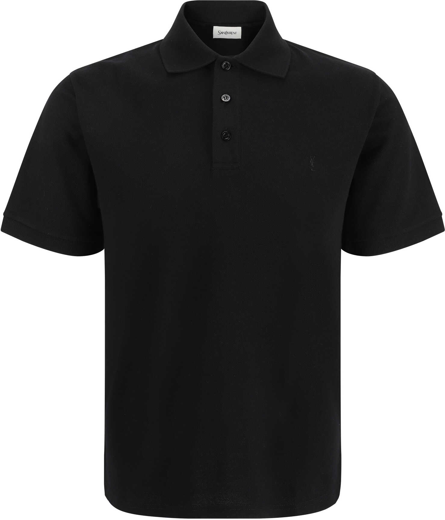 Cotton Cassandre Polo Shirt by Saint Laurent features classic ribbed collar, tone-on-tone front buttons, iconic tone-on-tone embroidered brand logo on front, regular fit.