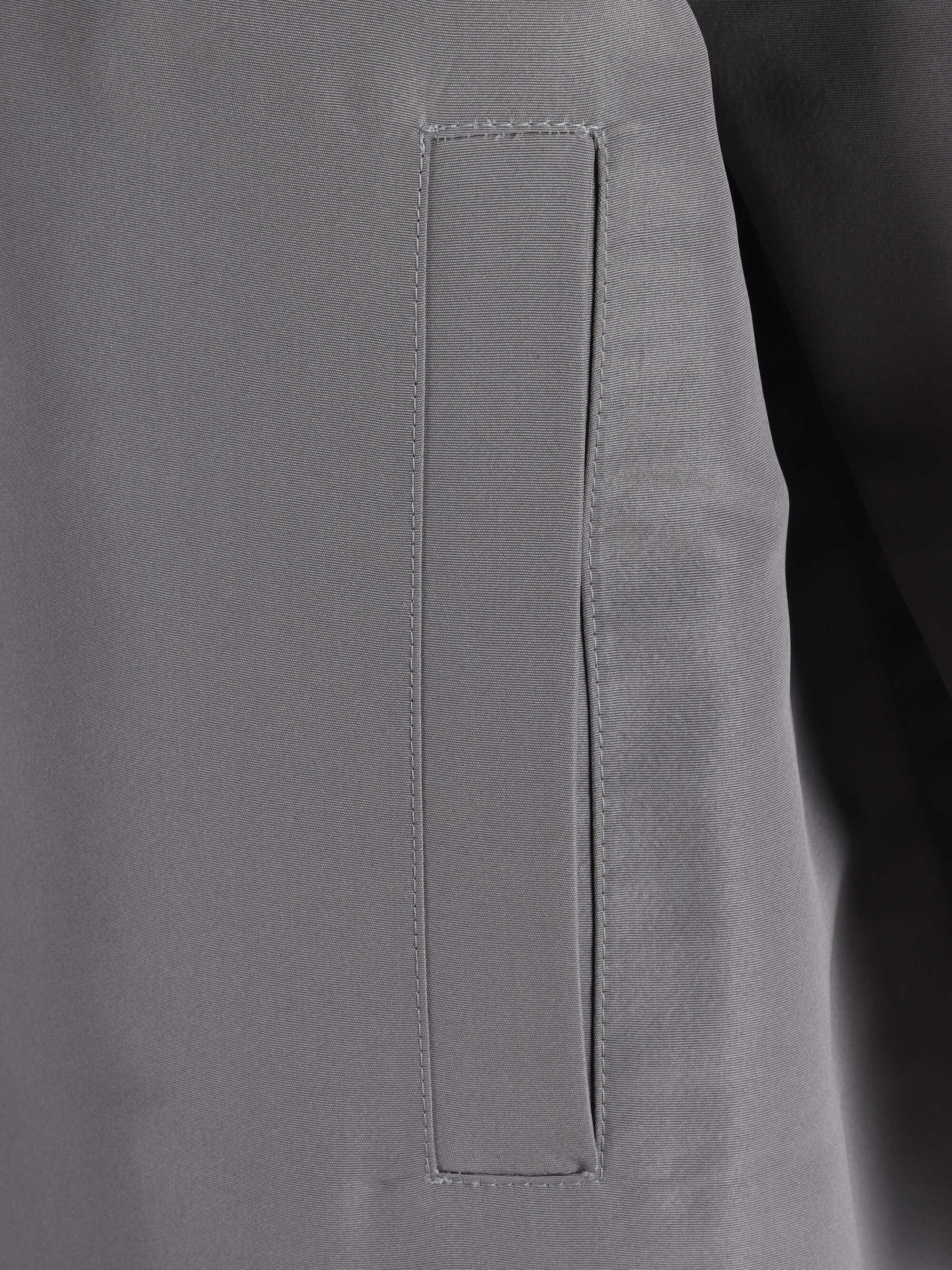 Silk jacket from Valentino, classic collar, front closure by concealed snap buttons, two side welt pockets, monochrome pattern, oversize fit.