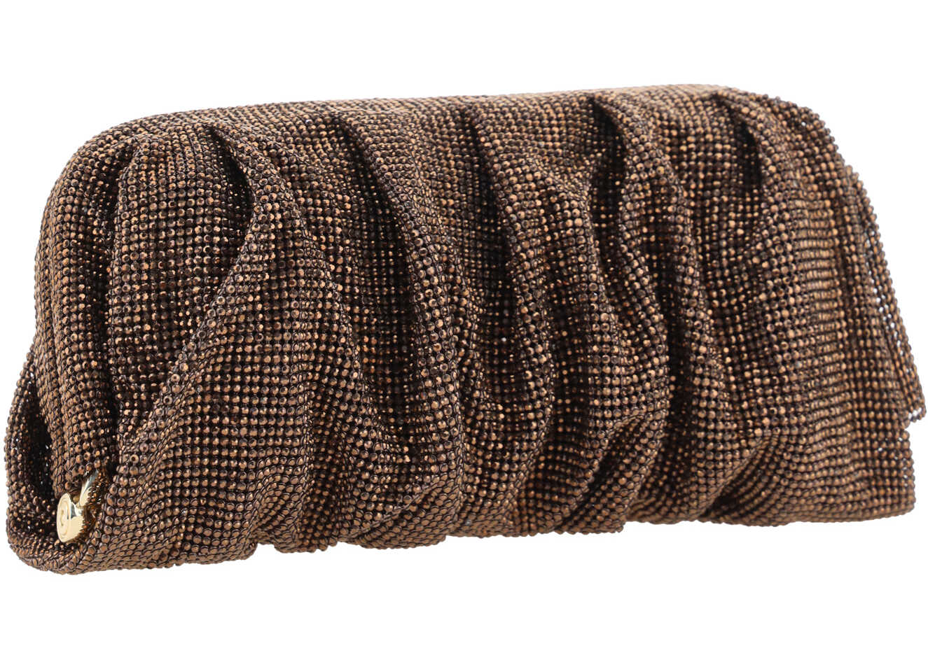 Venus La Grande Clutch Bag by Benedetta Bruzziches, entirely covered in rhinestones, top closure by snap magnet, soft ruching design, fabric lining inside, to be carried by hand.