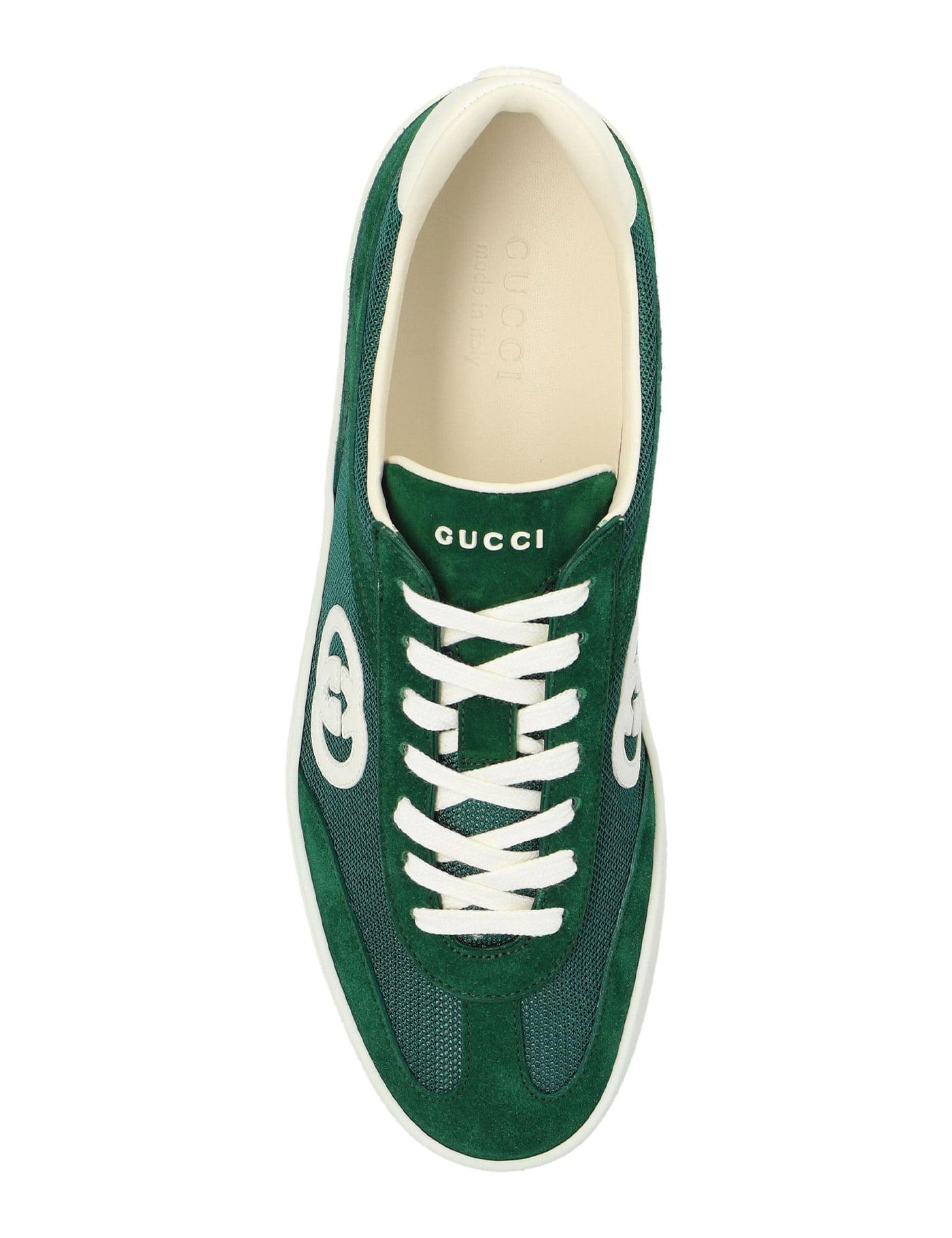 green calf suede mesh panelling logo patch to the side logo patch at the tongue signature Interlocking G logo contrasting branded heel counter round toe front lace-up fastening branded insole flat rubber sole We've partnered with Good On You — an independent agency that rates how brands perform in relation to their impact on the planet, people and animals, with a multi-criteria rating simplified to a five points scale. In order to be awarded our conscious label, larger brands need to score a minimum of four out of five ('Good'), while smaller brands must score at least three out of five ('It's A Start'). This item comes from a brand rated three out of five ('It's A Start') by Good on You at the time it was added on FARFETCH. Please note, this is a brand-level rating and does not guarantee that this product is made with conscious materials. Learn more about what makes a product Conscious on our Conscious Criteria page