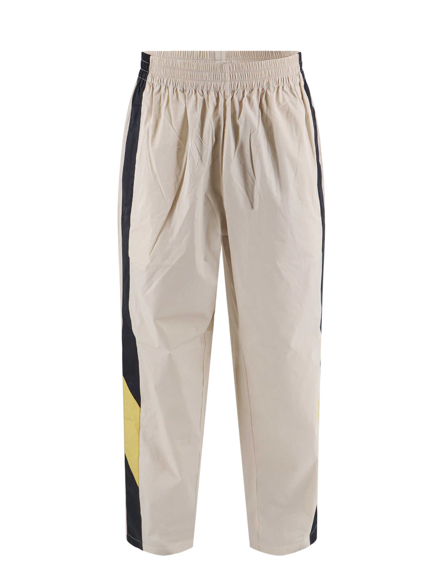 Elastic waistband, Contrasting side bands, Vertical welt pockets with zip, Logo embroidery, 80% cotton 20% recycled polyester