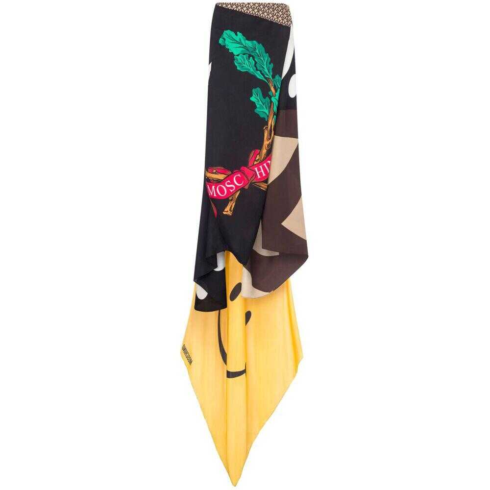 Black/multicolour silk mix print logo print to the side smiley face print polka dot print asymmetric hem maxi