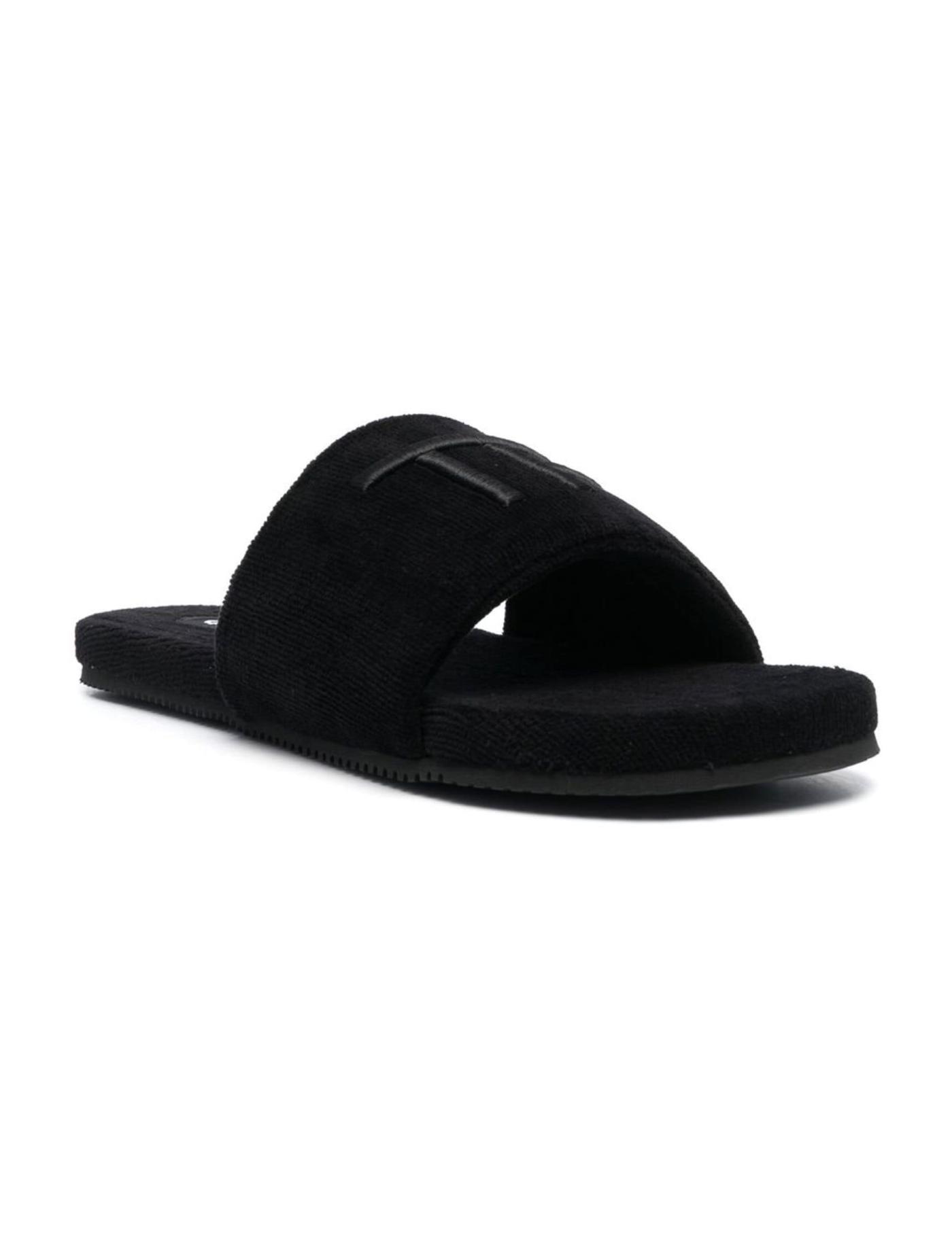 logo-embroidered velvet-effect mules