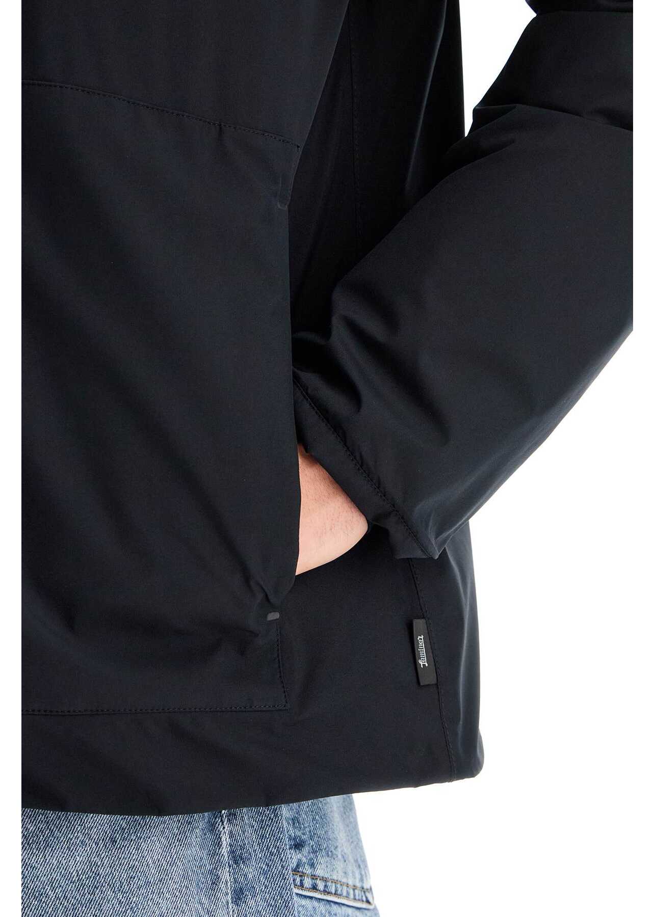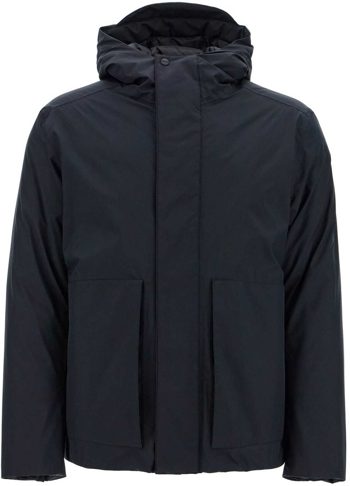 Short jacket with hood from the Laminar line by Herno, made of Gore-Tex Infinium Windstopper for water-repellent and windproof action and padded with 80/20 goose down. Closed with a two-way zip and hidden snaps, the outerwear features inner jersey cuffs, two spacious gusseted pockets with zips, and an adjustable hem. Quilted nylon lining with a pocket. Regular fit. The model is 187 cm tall and wears