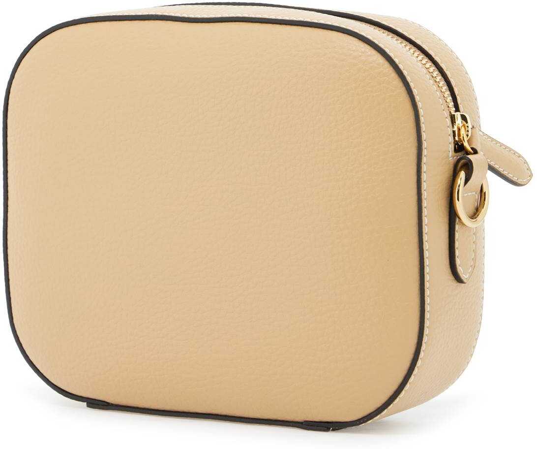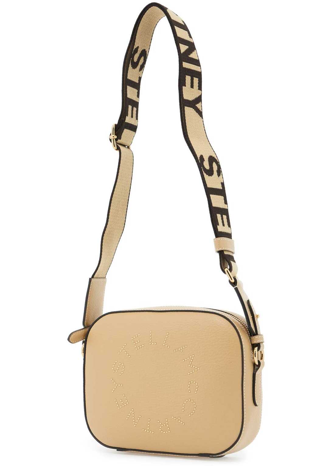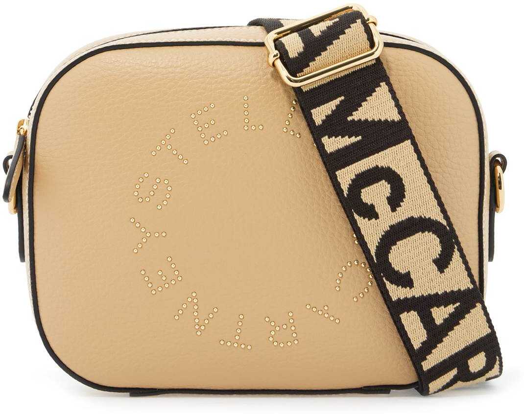 The Stella McCartney camera bag is made of Alter Mat with a gold micro-studded Stella logo. It features a zip closure, suede-like microfiber interior, open pocket, and a removable and adjustable fabric shoulder strap with metal lettering logo. The metal accessories have a gold finish.