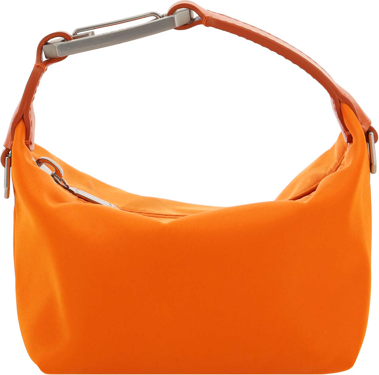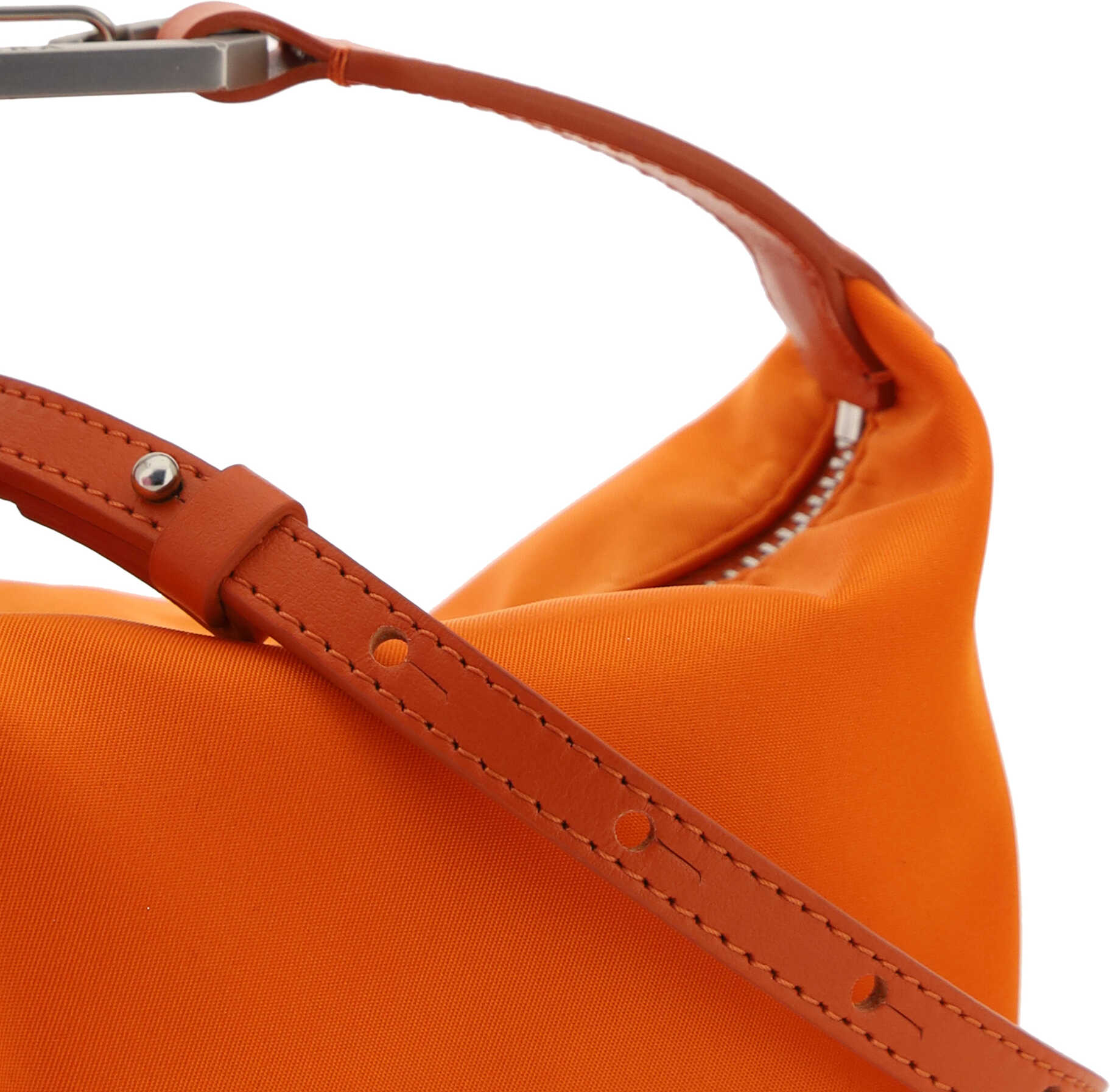 Tiny Moon Handbag by Eéra, short rigid leather handle with iconic snap hook detail with brand signature engraved, top zip fastening, embossed puller, interior leather welt pocket, satin effect bag design.