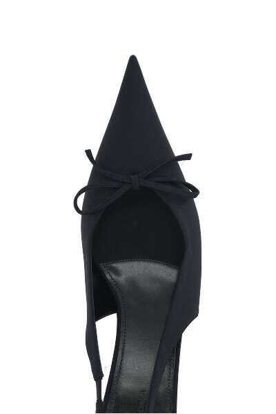 Balenciaga's slingbacks crafted in black spandex with front decorative bow. Featuring an elongated pointed toe, elasticated ankle strap, leather lining and leather sole. The design is completed by a covered kitten heel.