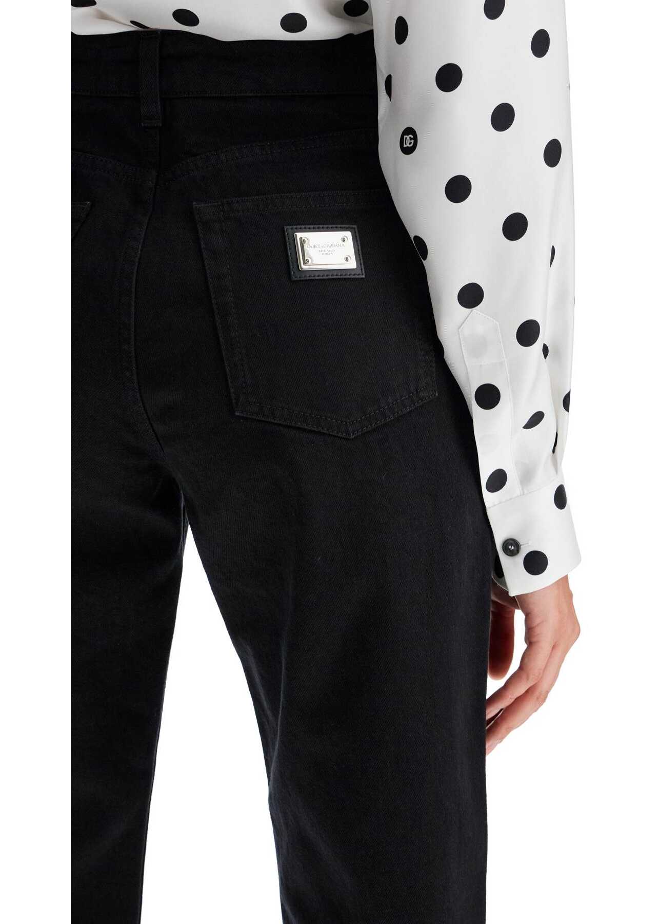 These Dolce & Gabbana boyfriend jeans are made of black denim with a straight and comfortable silhouette at medium waist. The classic five-pocket design is completed by belt loops, front zip and button closure, and a logo plaque on the back. The model is 177 cm tall and wears size IT 40.