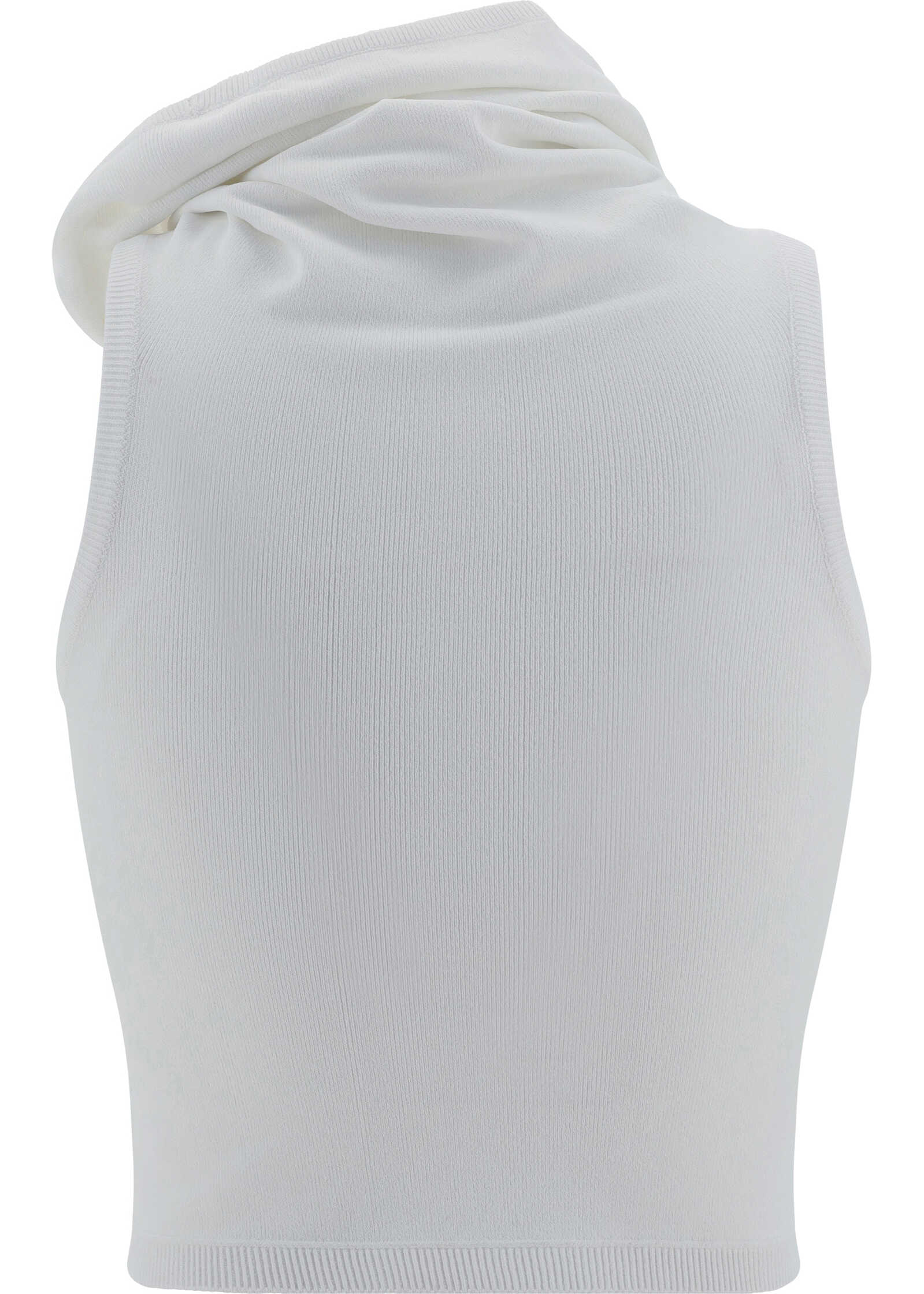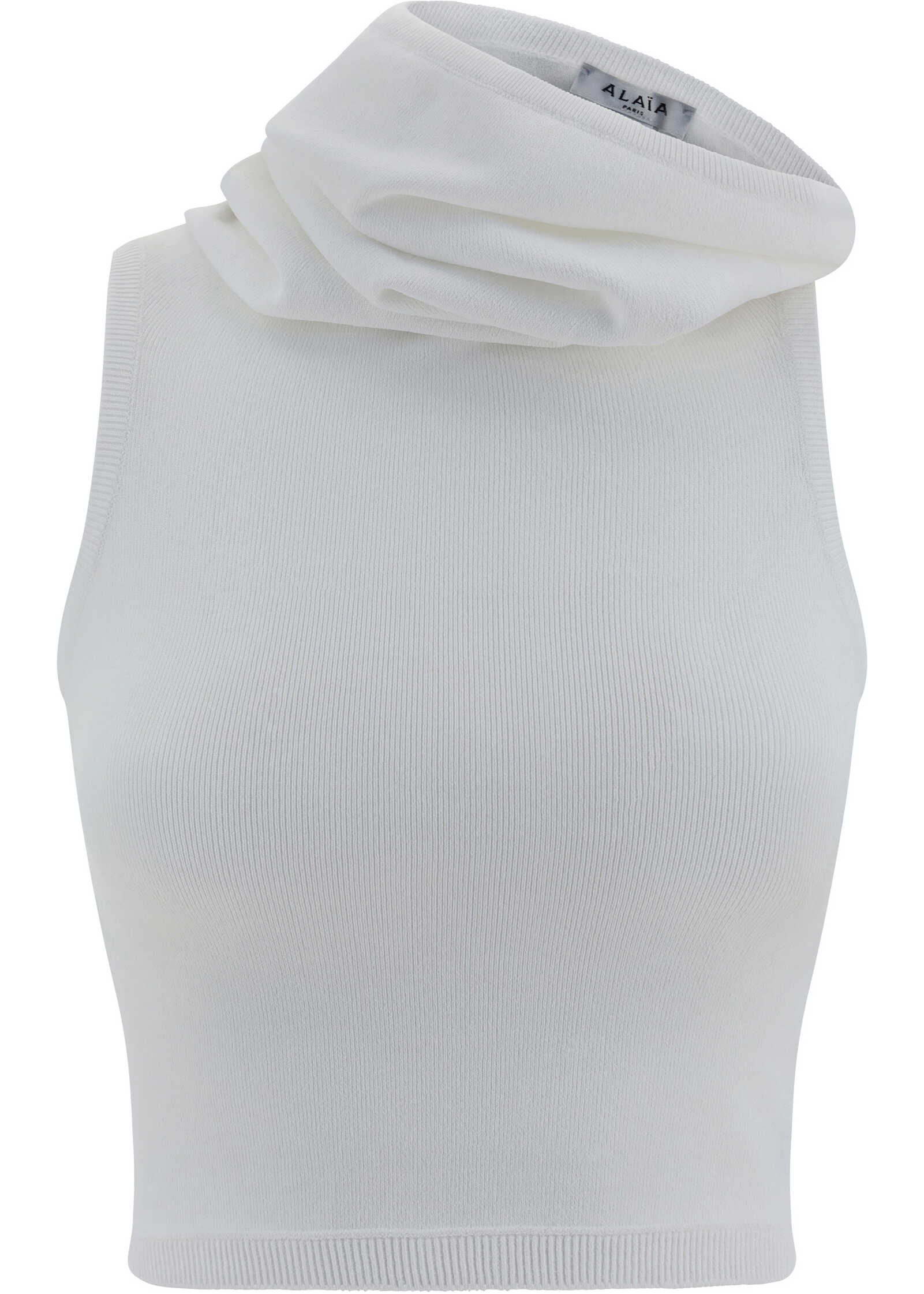 Hooded Top by Alaïa, sleeveless crop design, ribbed edges, hooded model, monochrome pattern, regular fit.