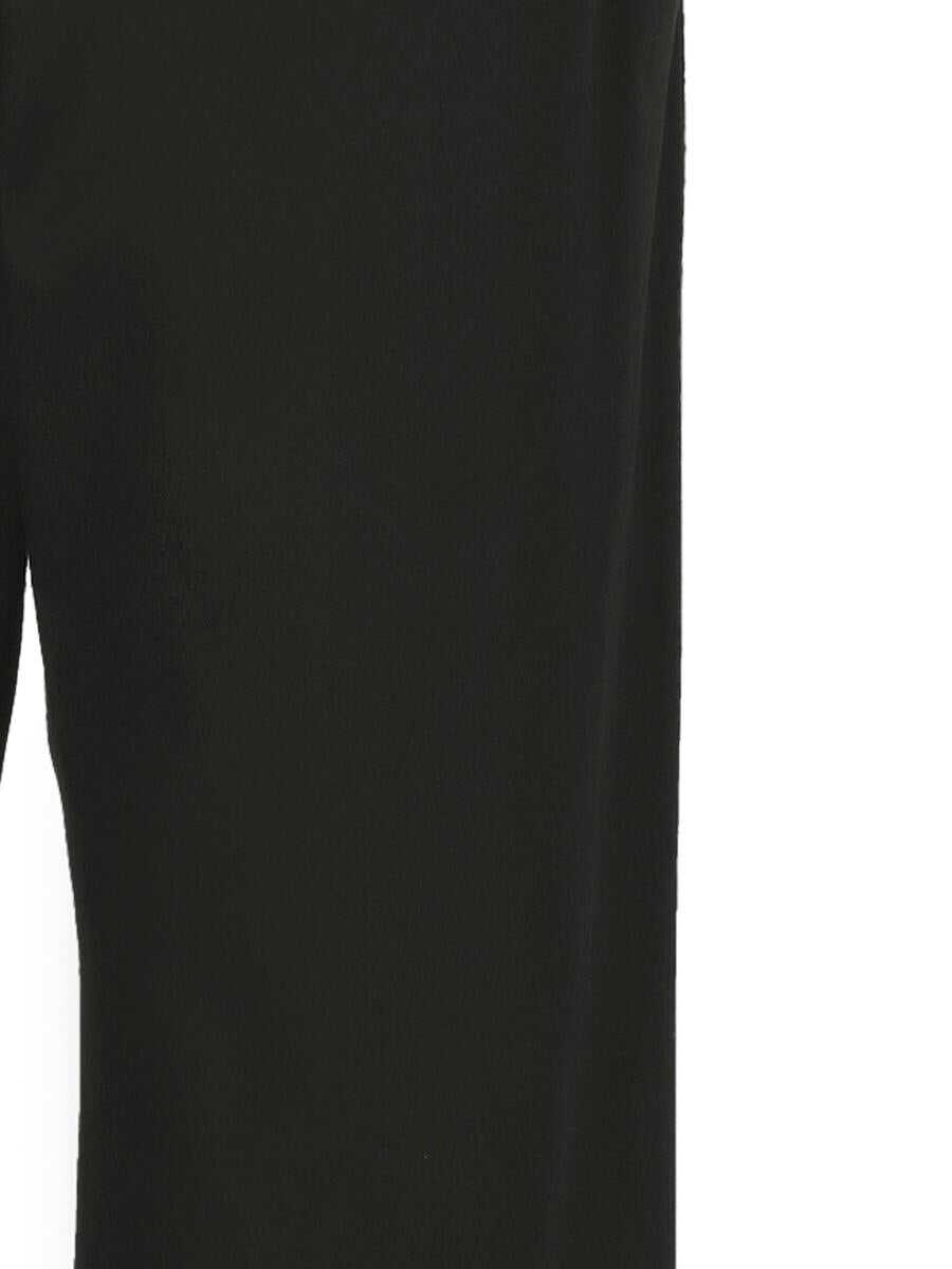 Black cotton blend twill weave concealed front zip fastening mid-rise elasticated waistband with internal drawstring two side slit pockets side zip-fastening pocket two rear welt pockets straight leg