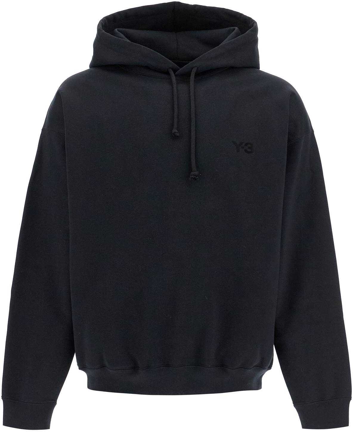 This Y-3 oversized sweatshirt is made of brushed cotton and recycled polyester jersey, with a minimal design finished off by a tone-on-tone logo print on the chest. It features an adjustable hood with drawstring and ribbed cuffs and hem. The model is 187 cm tall and wears size M.