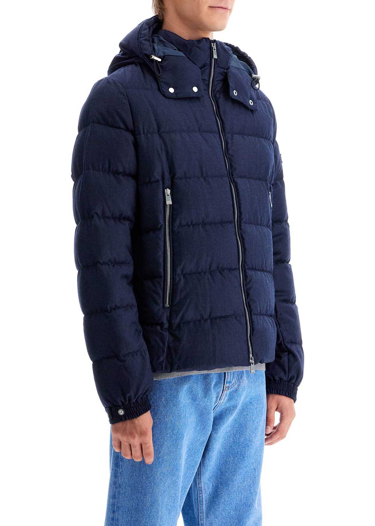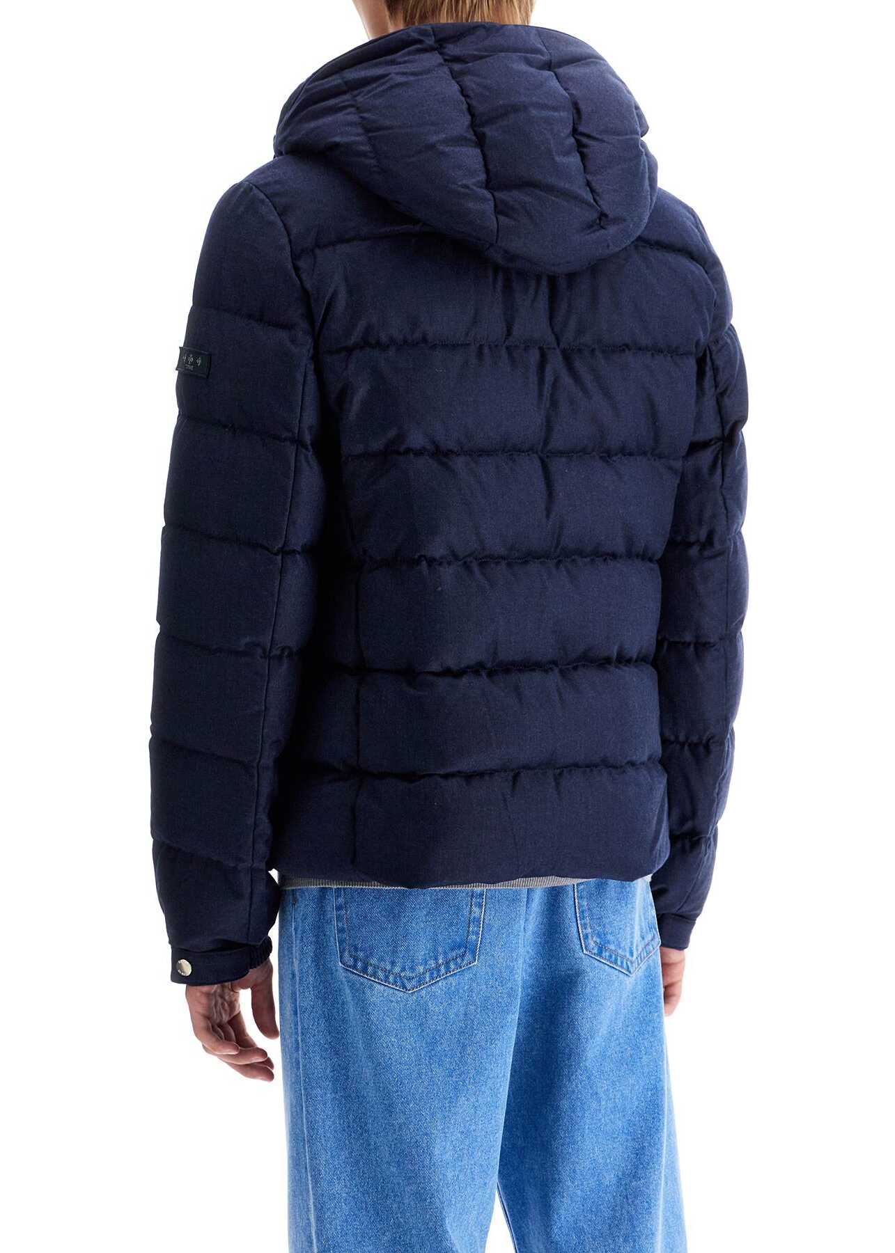 Piumino corto Domiziano della collezione R-line di Tatras, realizzato in pregiato twill di morbida lana e seta ed imbottito in fiocco e piuma d'oca 90/10. Presenta chiusura con zip a due tiranti, cappuccio removibile con zip e coulisse dotato di cinturino sottogola con bottoni a pressione, tasche frontali a filetto con cerniera, polsini elasticizzati regolabili e coulisse sul fondo. Foderato in nyon logato con una tasca ulteriore. Vestibilità regolare. Il modello è alto 187 cm e indossa la taglia 3 Tatras.