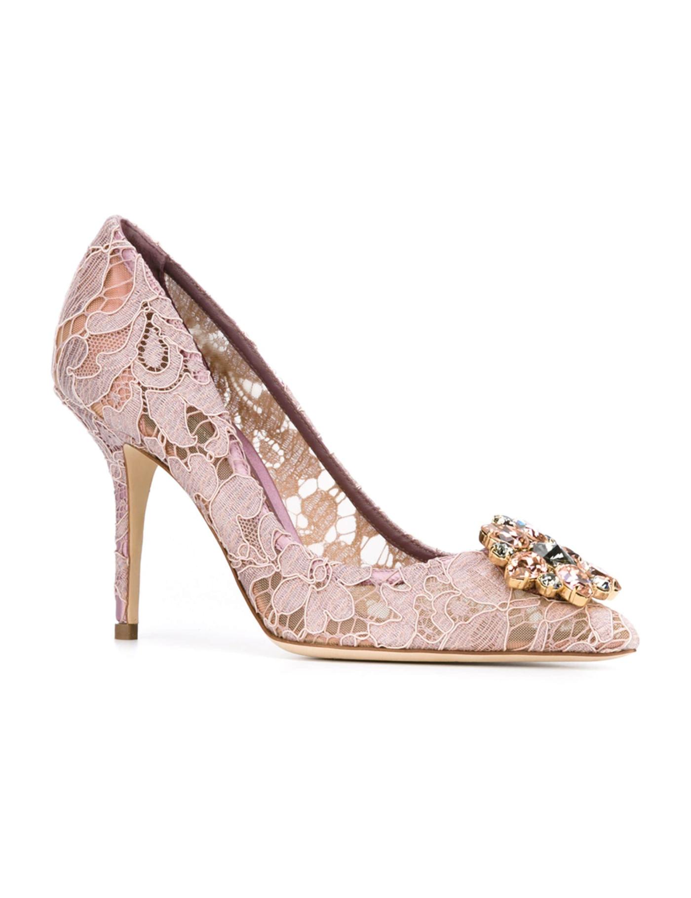 - Dolce and Gabbana live and breathe Italian spirit - reflected within their collection of sleek ready-to-wear and accessories that redefine Sicilian seductiveness. These pale pink Belluci Taormina lace pumpsfeature a pointed toe, crystal embellishments, a floral lace pattern, a brand embossed insole, a high stiletto heel and a leather sole.