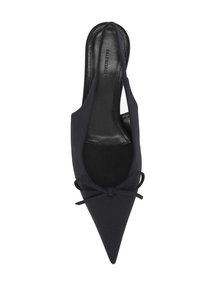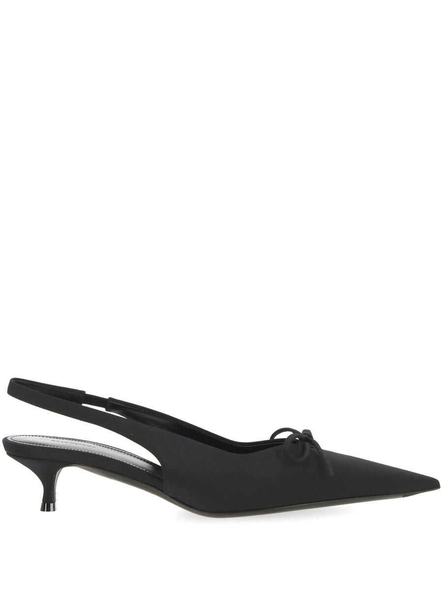 black satin finish bow detailing elasticated slingback strap pointed toe branded leather insole leather sole 40mm kitten heel. HEEL: 4.0 Centimetres