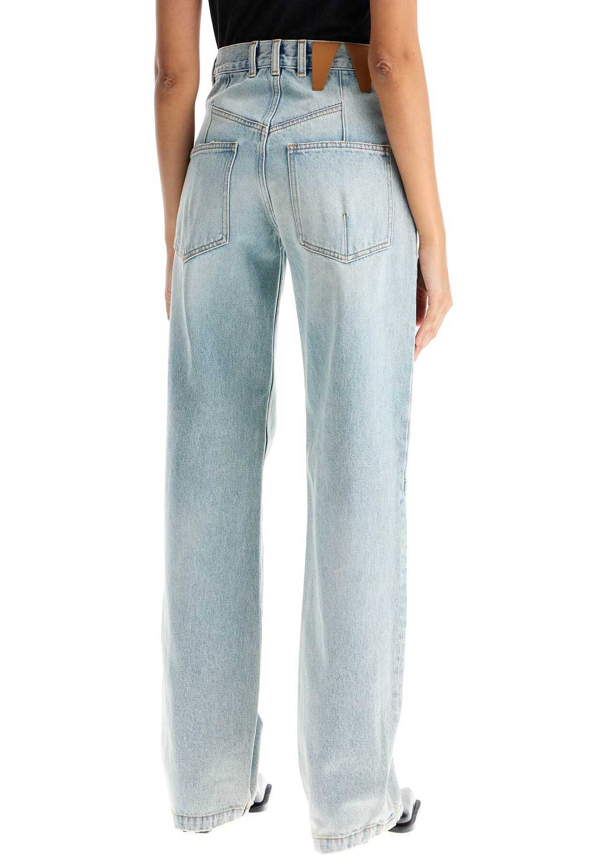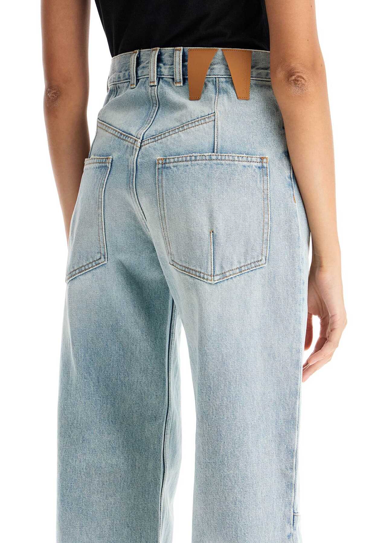These Darkpark Lu five-pocket jeans are made of pure cotton denim in a light wash, featuring a high-waisted design detailed with stitching on the knees and back. They have a hidden zip and button closure and a straight leg fit. The model is 177 cm tall and wears size 26.