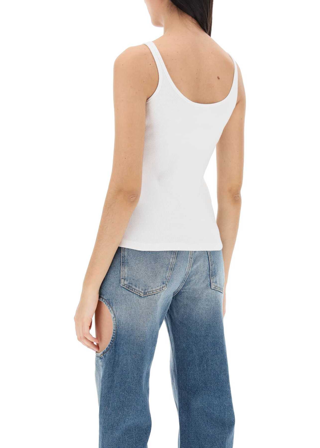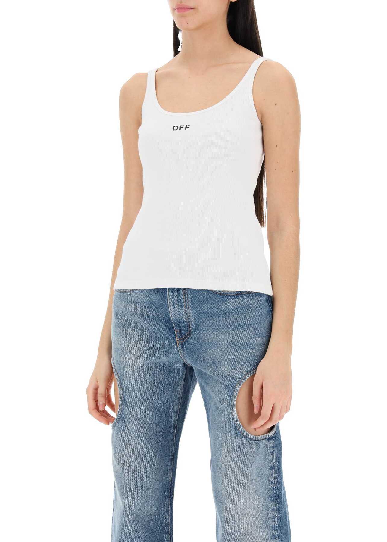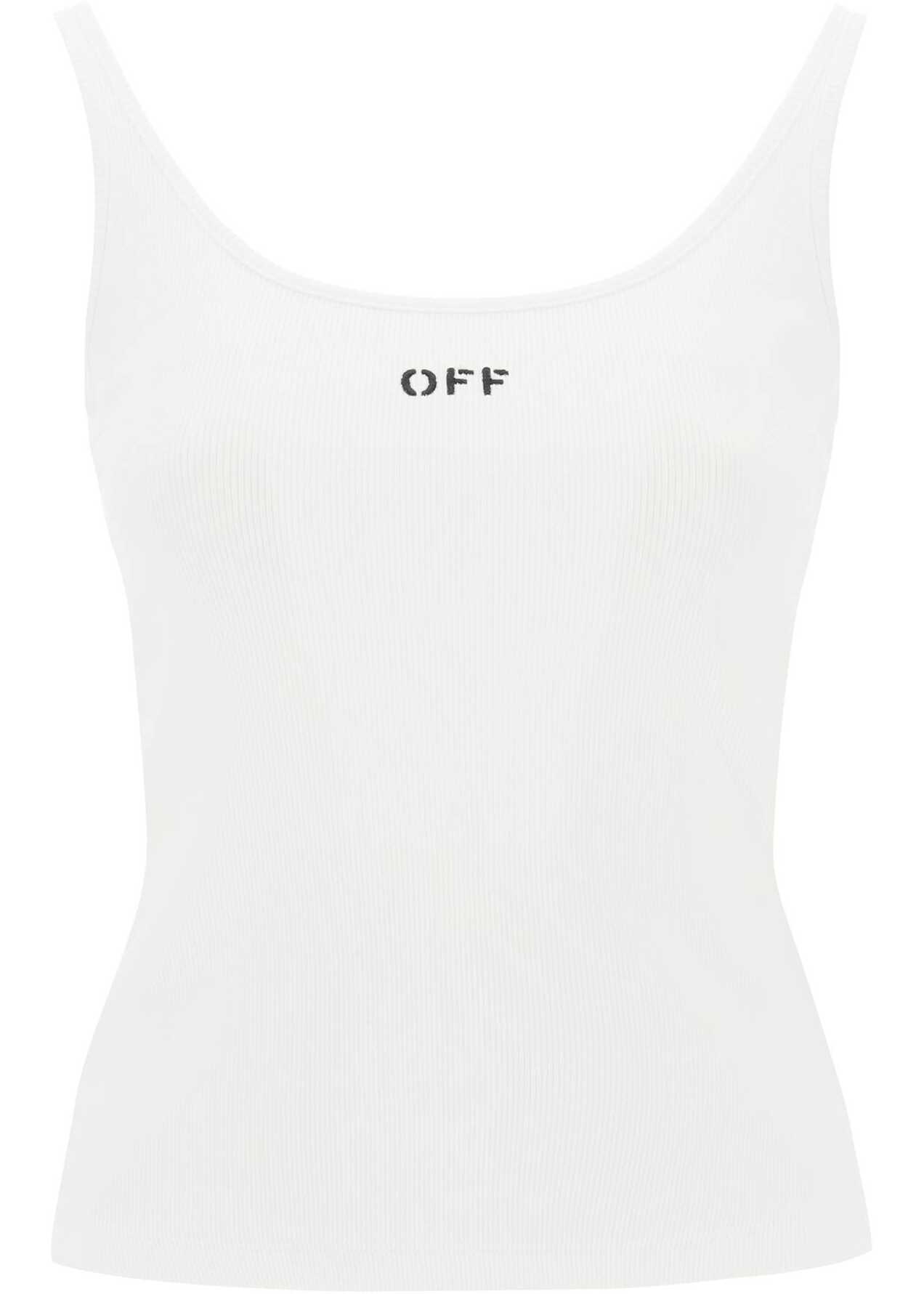 Off-White tank top crafted in ribbed cotton jersey with contrast OFF embroidery on the chest. It features scoop neck and it is characterized by a waisted fit. The model is 177 cm tall and wears size IT 38.