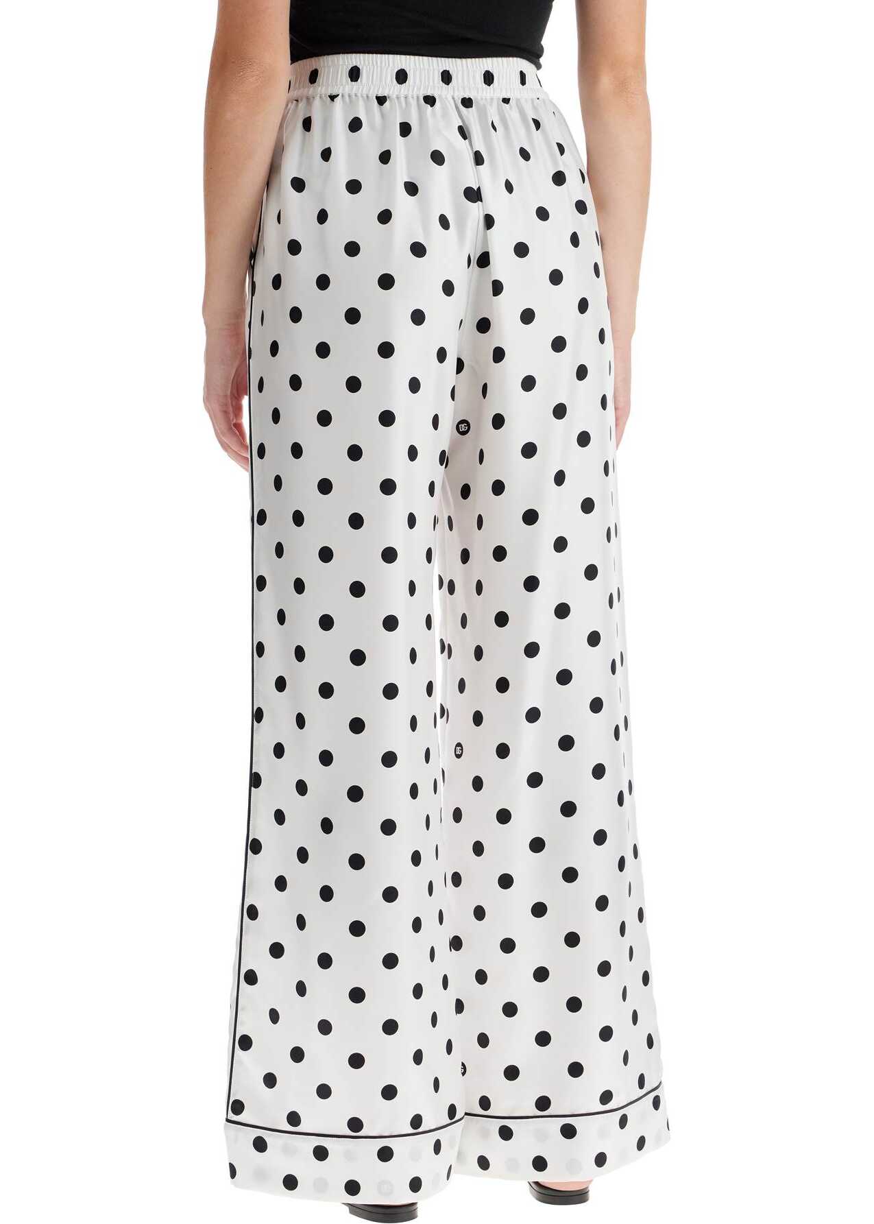 Dolce & Gabbana silk polka dot print pajama pants with an elastic waistband, French pockets and a relaxed fit. The model is 177 cm tall and wears size IT 40.