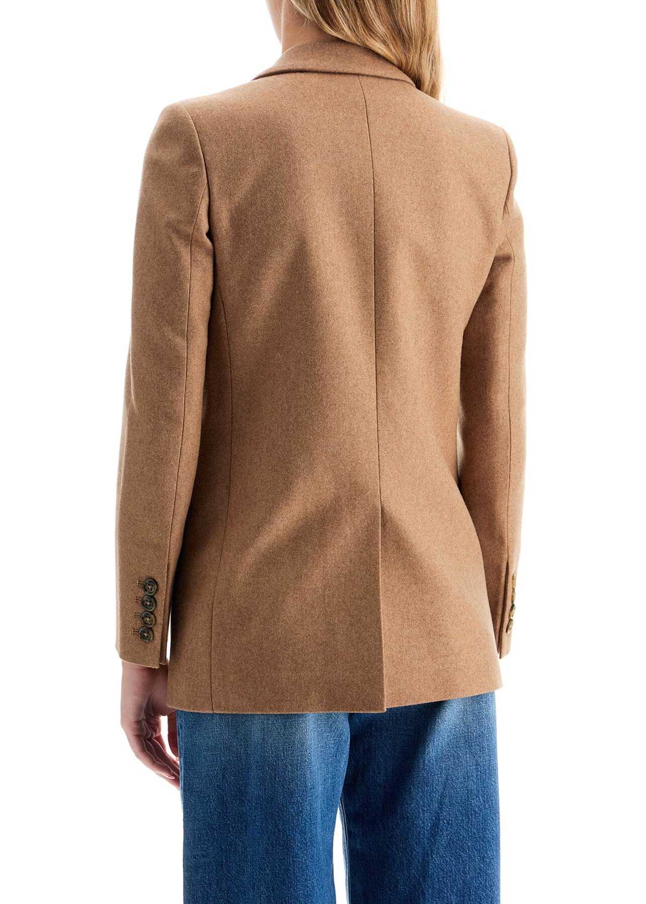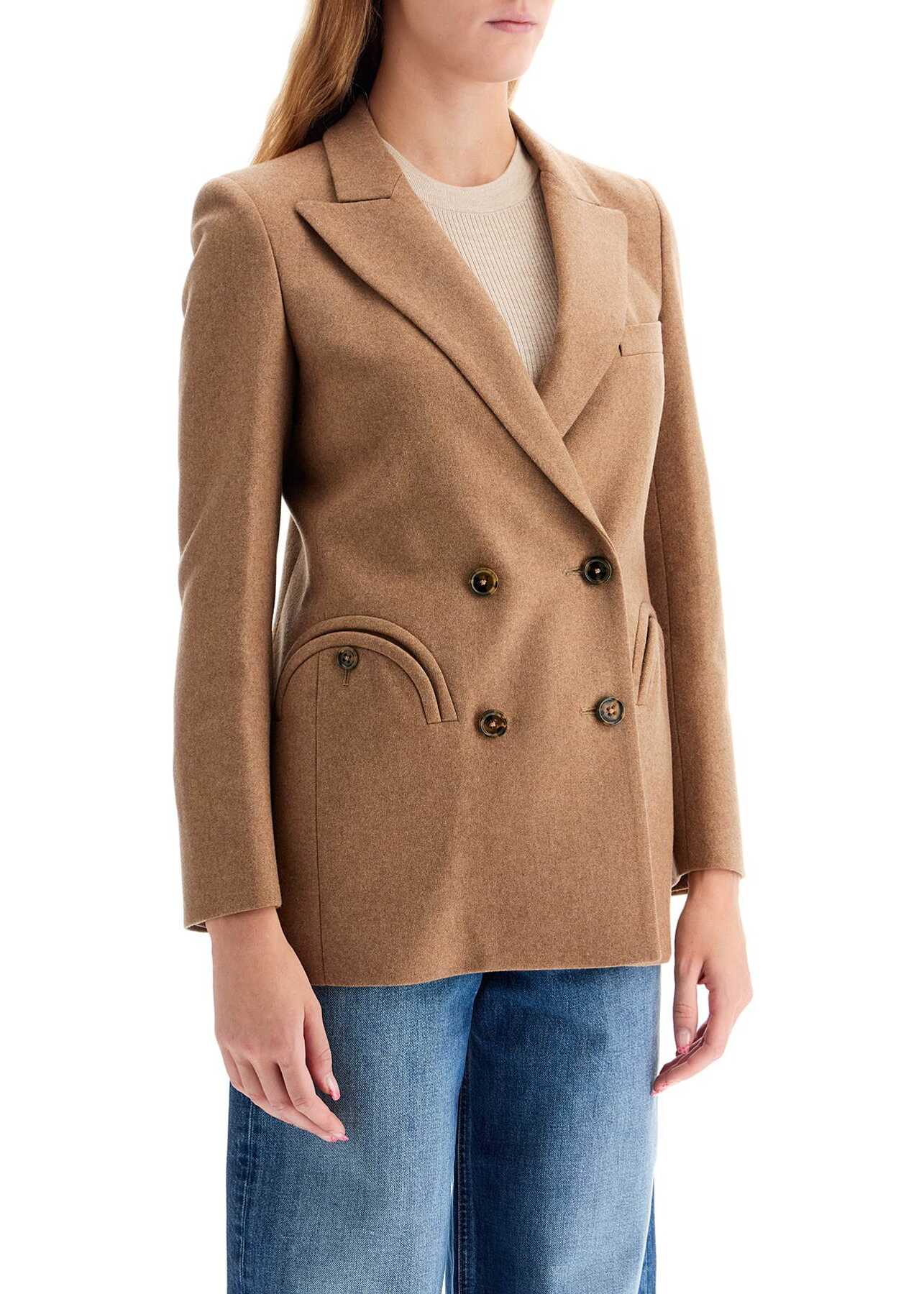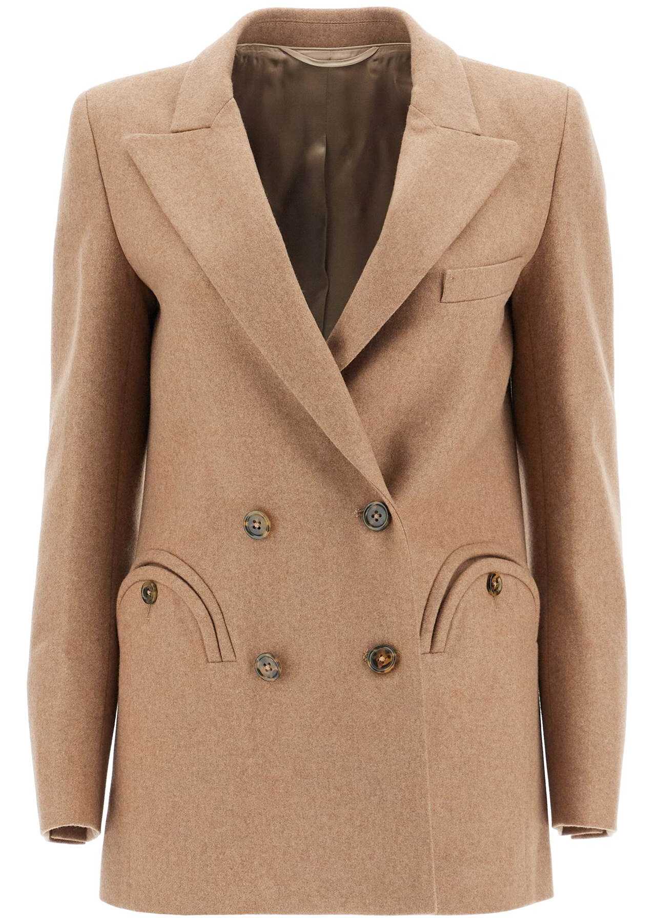 Blazé Milano double breasted blazer made of virgin wool and cashmere double fabric. Slim silhouette with peak lapels, featuring the signature Smiley pockets and a welt pocket at chest. Front fastening and cuffs enriched by buttons. Full viscose lining with four internal pockets. The model is 177 cm tall and wears a size 0.