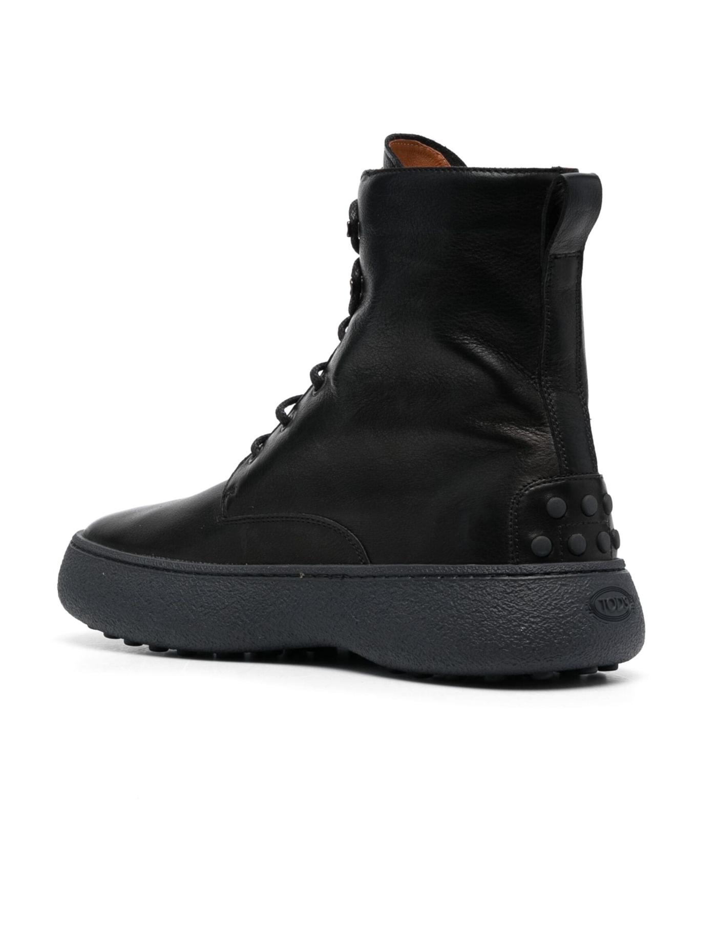 Seamlessly blending craftsmanship and utilitarian styles, Tod's designs the W.G. boots from supple calf leather worked for a slightly brushed finish in Italy. Rendered in an all-black hue for AW23, the pair is decorated with the house's iconic Gommino rubber motif at the heel counter.