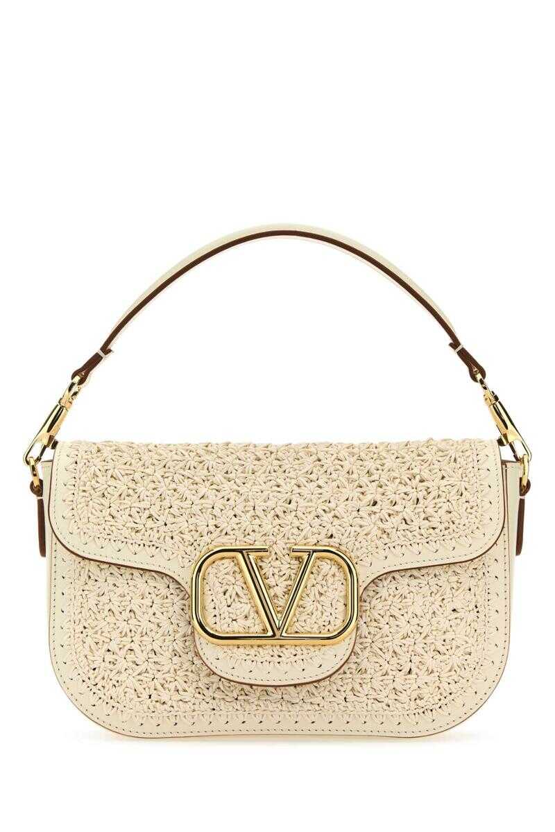 Ivory raffia and leather VLogo handbag Width: 24 cm Height: 16 cm Depth: 8 cm Handle height: 12 cm Min shoulder strap length: 40 cm Max shoulder strap length: 75 cm