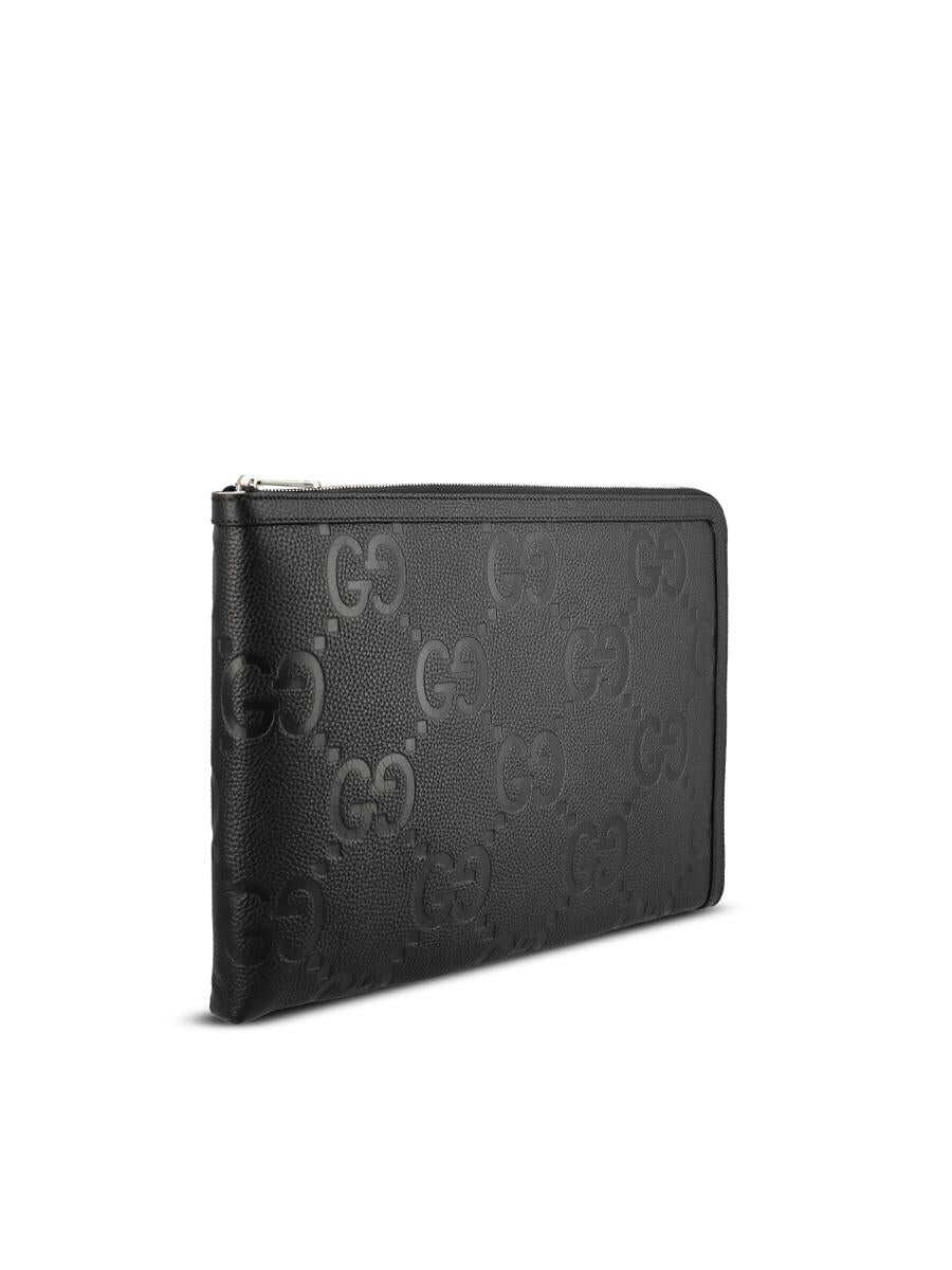 - Material: 100% calfskin leather - Color: black - Cotton and linen lined interior - Other details: all-over GG pattern - Zip closure - Made in Italy - Dust bag - Item number: 792262AABY01000 - Dimensions: W37.5cm x H26cm x P2cm