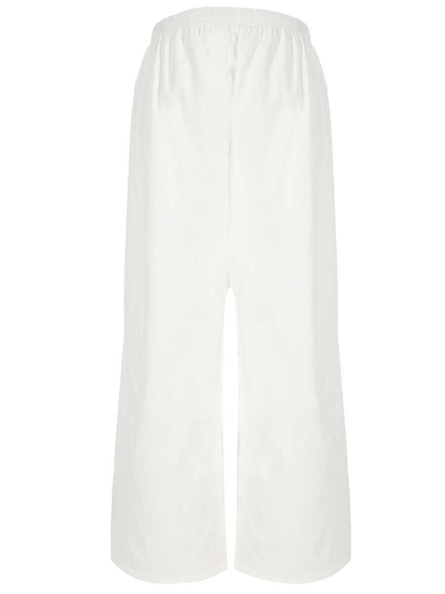 White elasticated drawstring waistband wide leg two zip-fastening pockets mesh lining