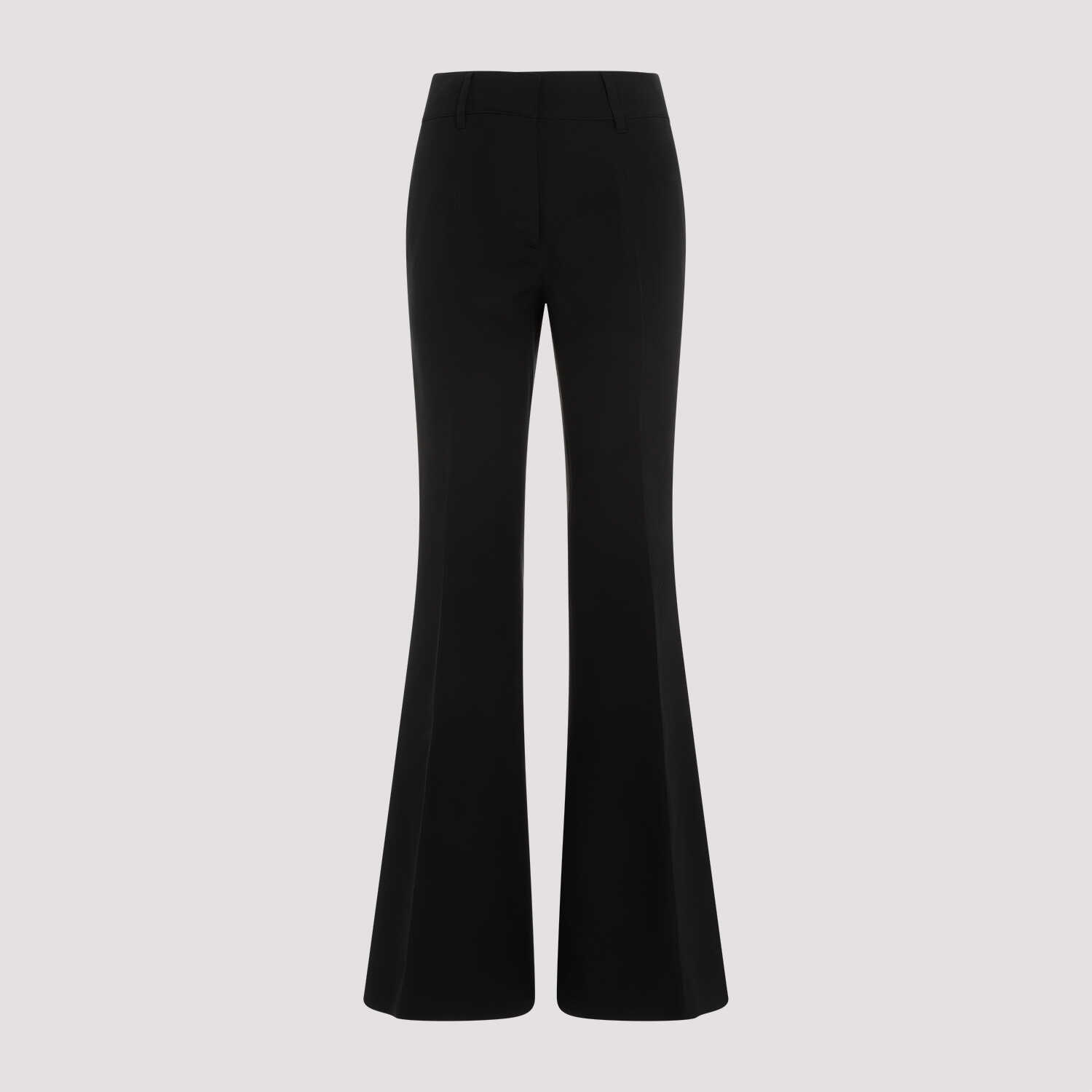 Gabriela Hearst Rhein Black Silk-Wool Pants. Black silk and wool, front concealed button, hook and zip fastening, belt loops, high rise, slant pockets, one welt pocket on the back, central loose crease front and back, flared hem.