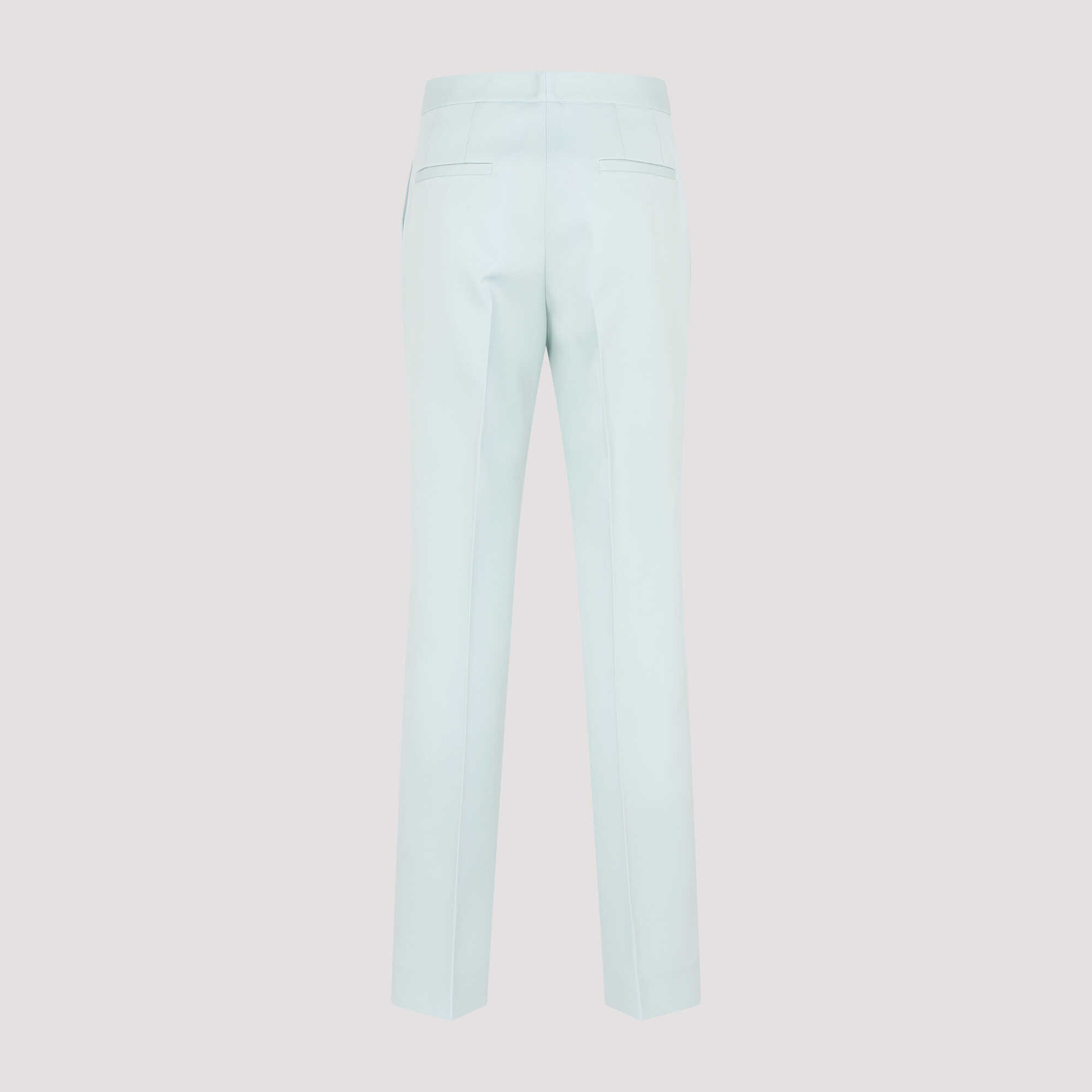 Jil Sander Blue Wool Trousers. Crafted in pure China blue wool. Concealed front fastening, trouser crease, two side slit pockets, two back welt pockets, straight hem.