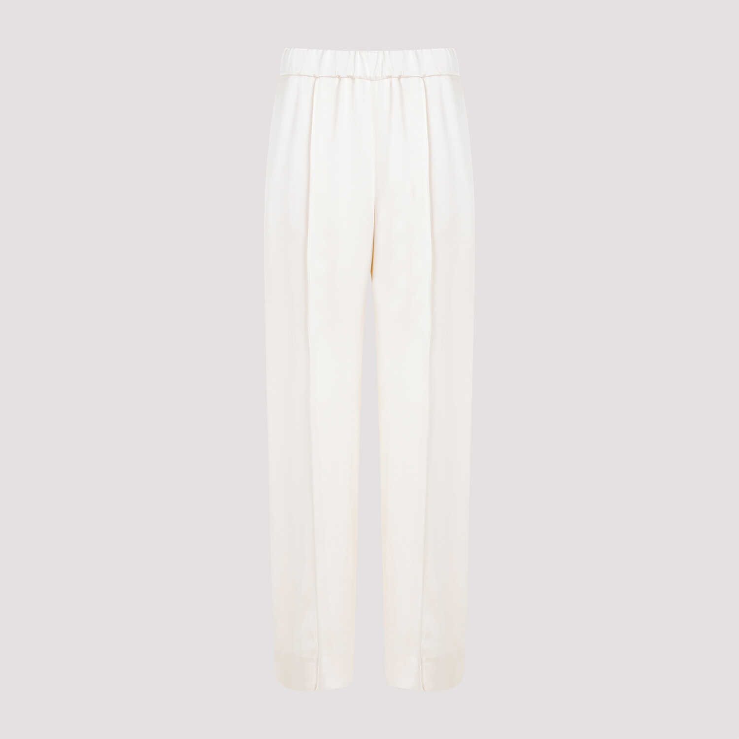 Jil Sander Cornsilk Viscose Pants. Crafted in pure cornsilk viscose, elasticated waistband, slant pockets, welt pocket on the back, central sewn creases, straight leg.