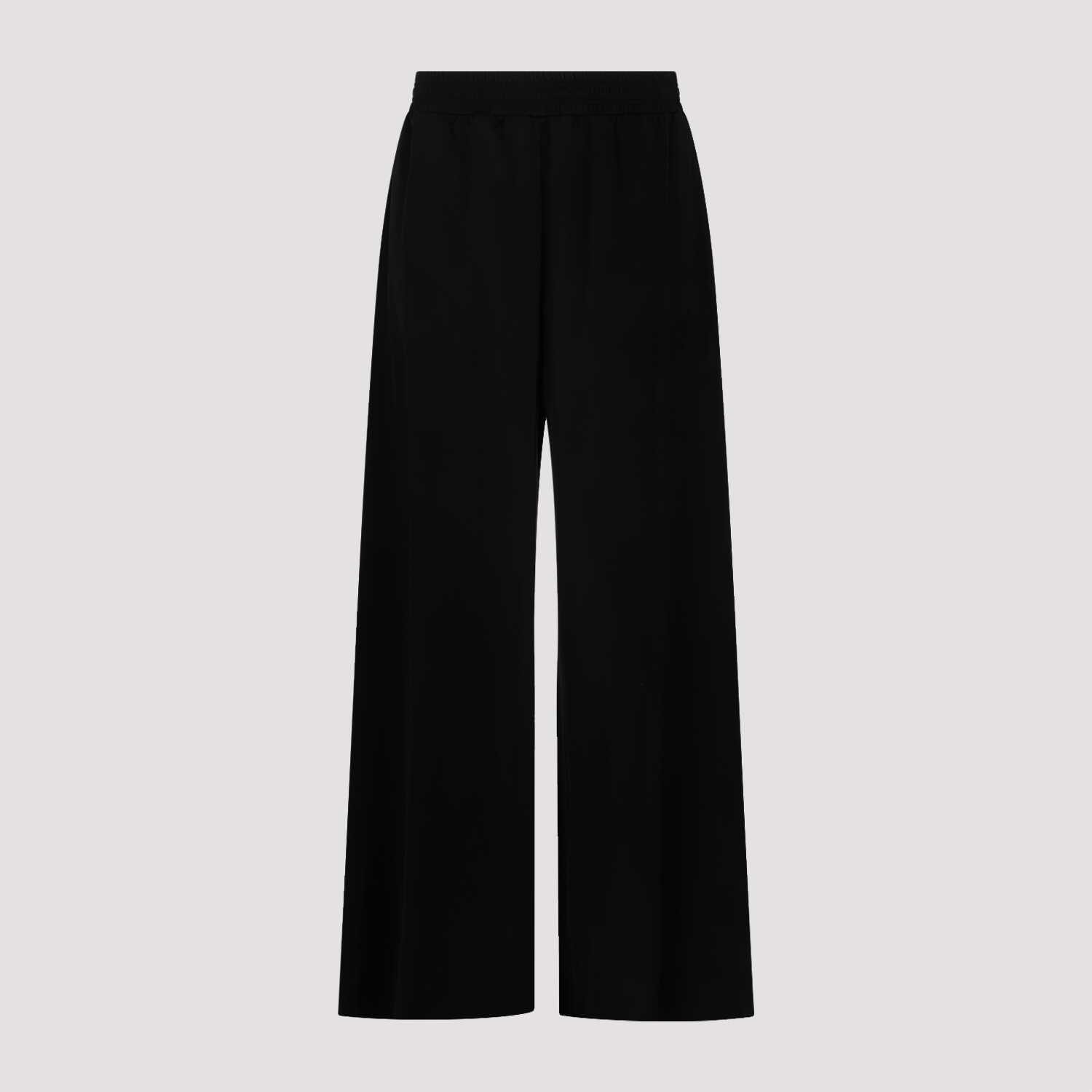 Fabiana Filippi Black Acetate Pants. Black cupro twill, elastic smocked waistband, wide leg, full length.