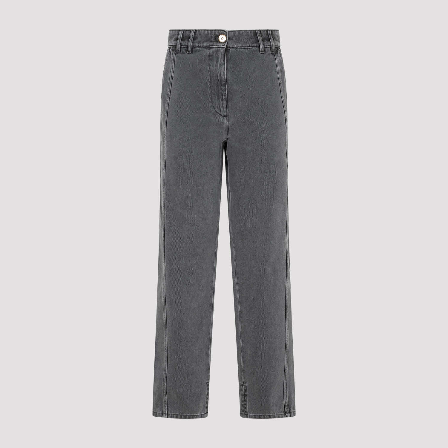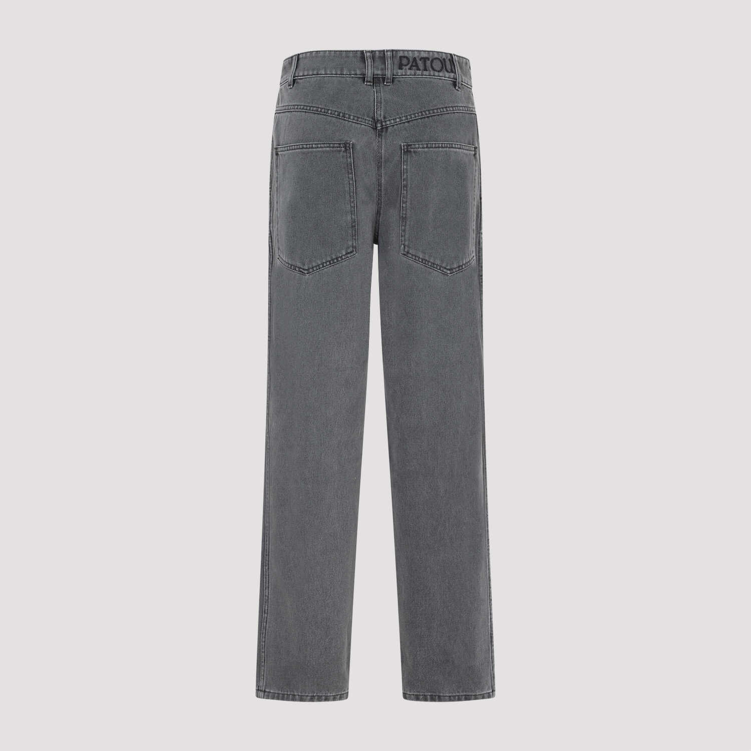 Patou Cargo Anthracite Cotton Trousers. Pure anthracite cotton denim, zip and button closure, belt loops, back embroidered logo, patch pocket on the back, stitching details embellishment, straight hem.