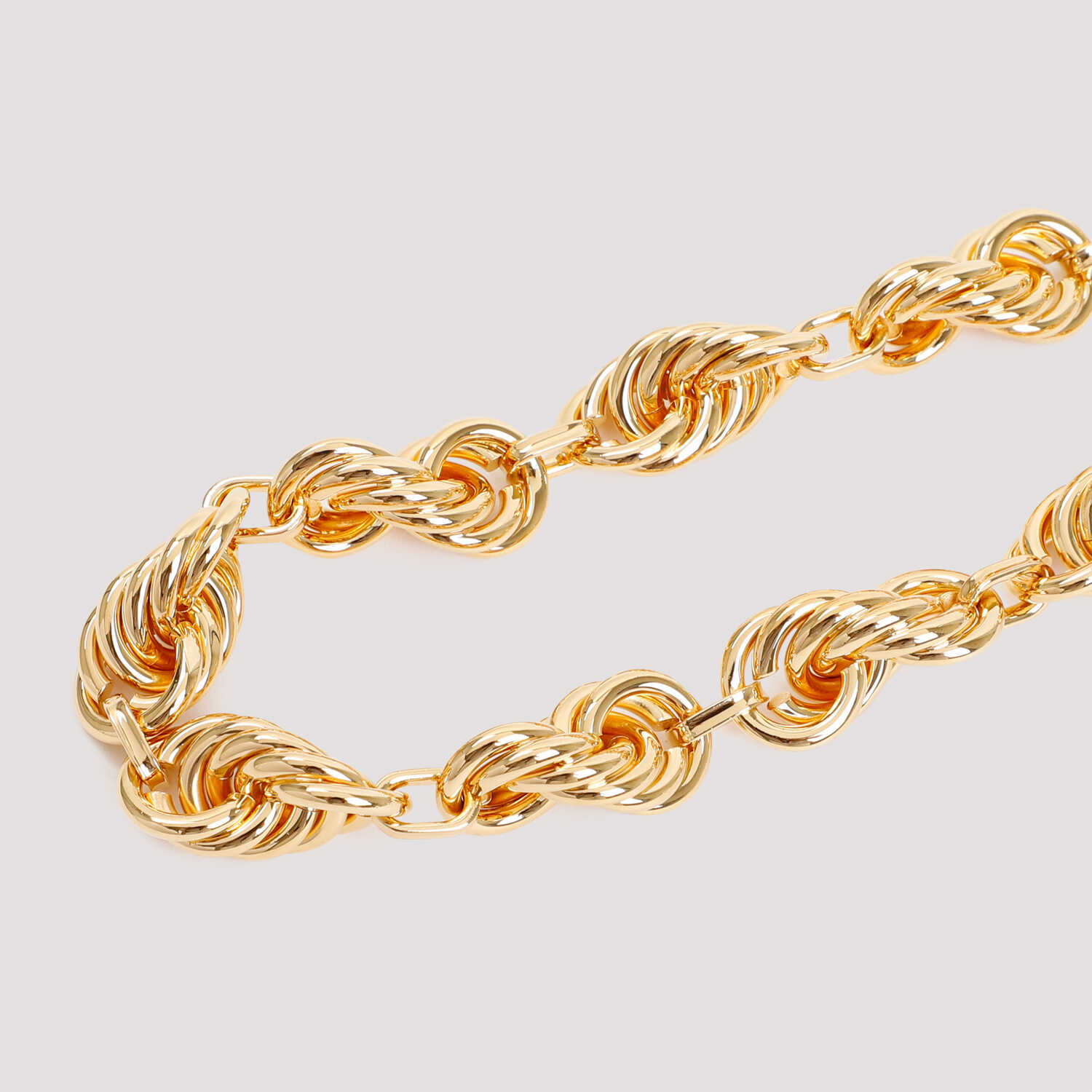 Jil Sander Gold Eco Brass Necklace. Crafted in gold eco brass, weaved-shape charms, hook closure on the back.