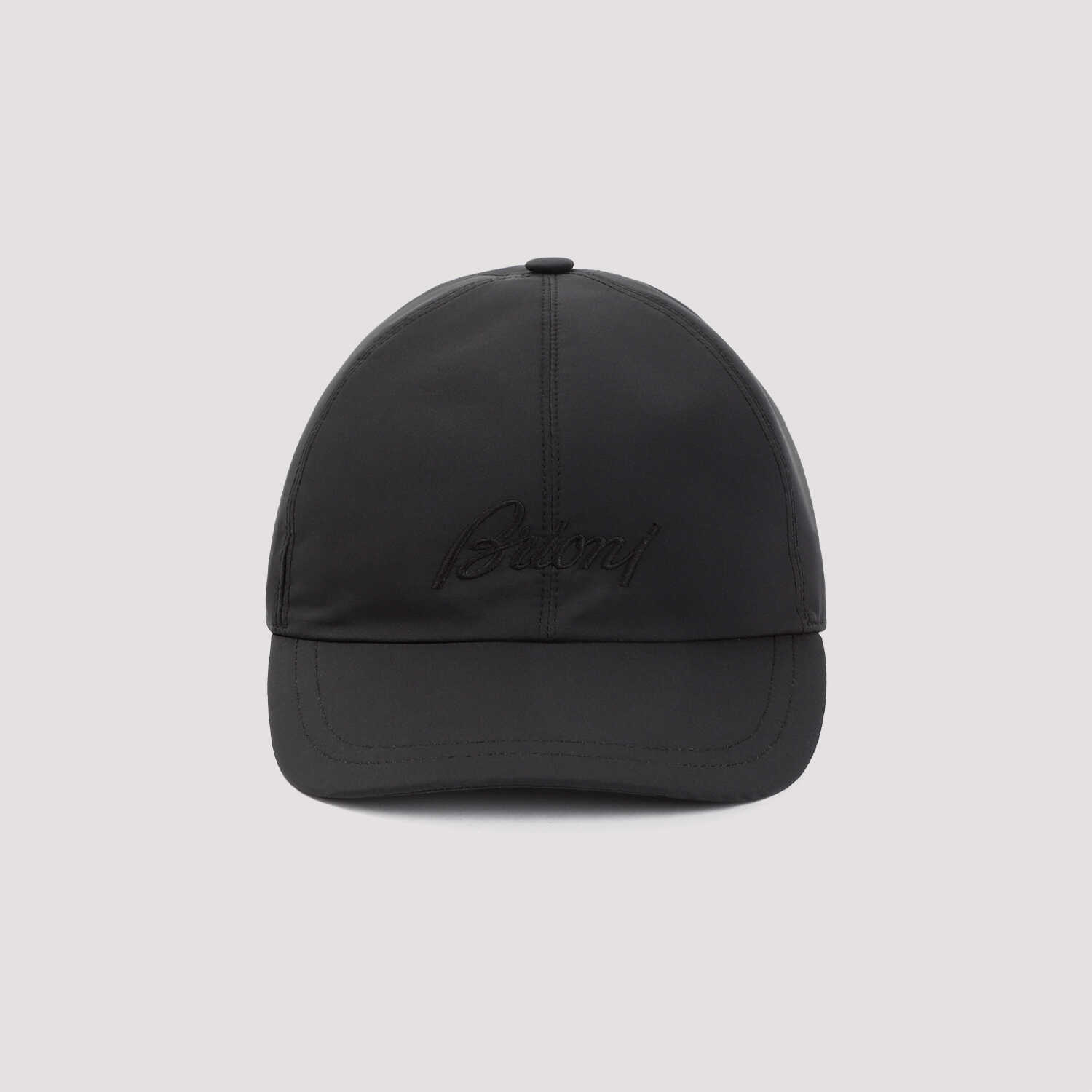 Brioni Midnight Blue Baseball Hat. Pure midnight blue polyester hat, six-panel construction, front embroidered logo, tonal visor, adjustable strap on the back.