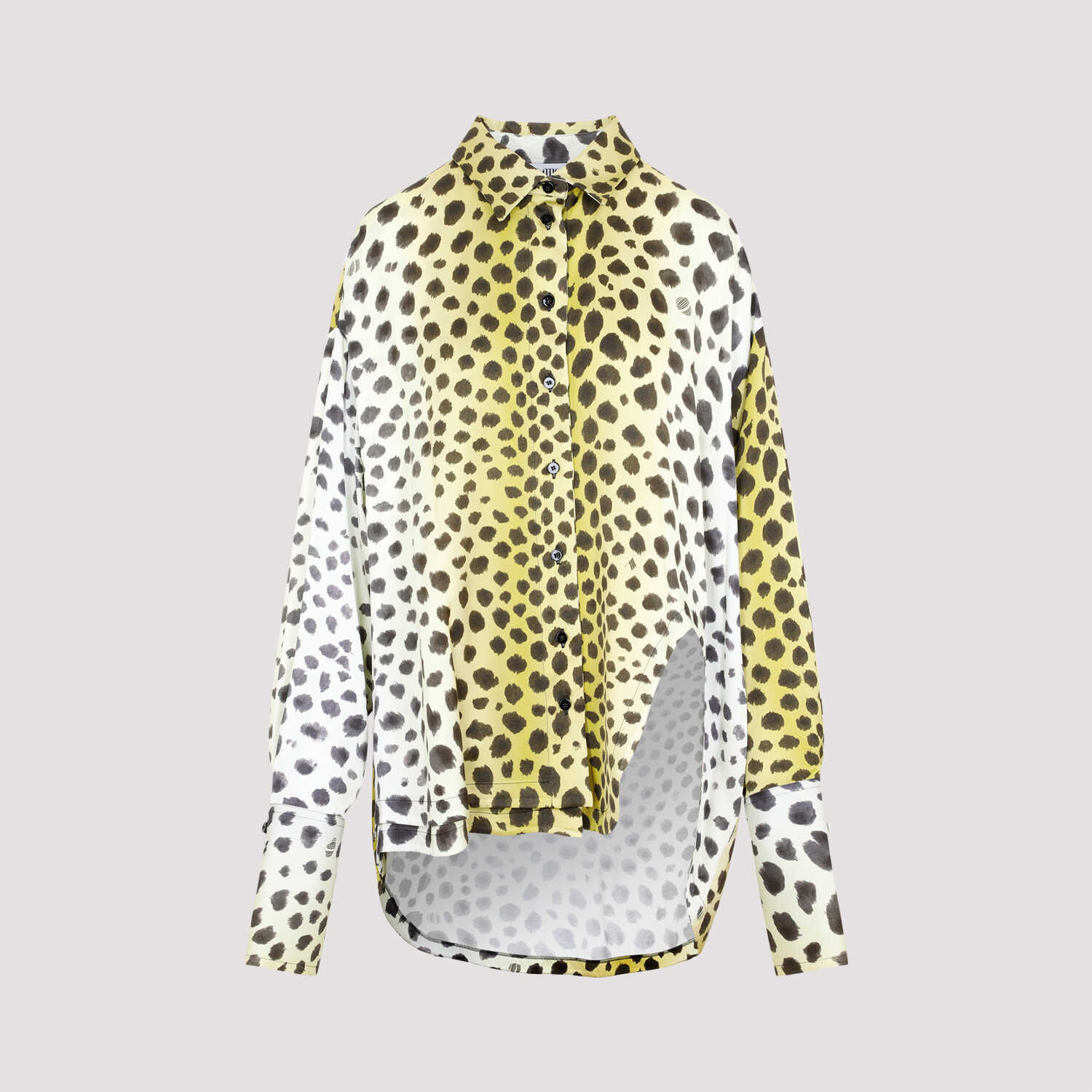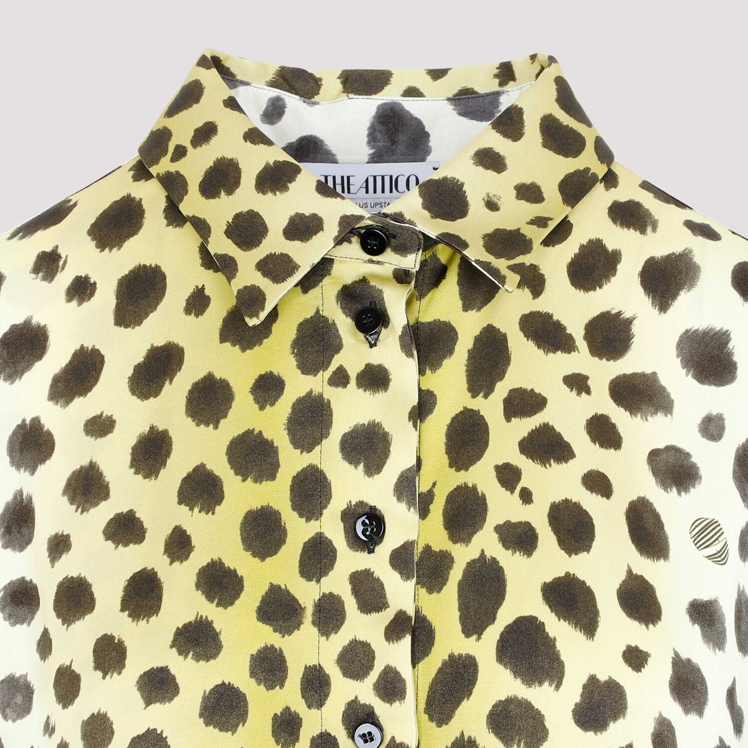 The Attico Yellow Animalier Kota Shirt. Yellow Animalier printed viscose, classic collar, long sleeves, long buttoned cuffs, shaped split. Relaxed fit.