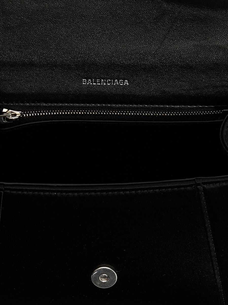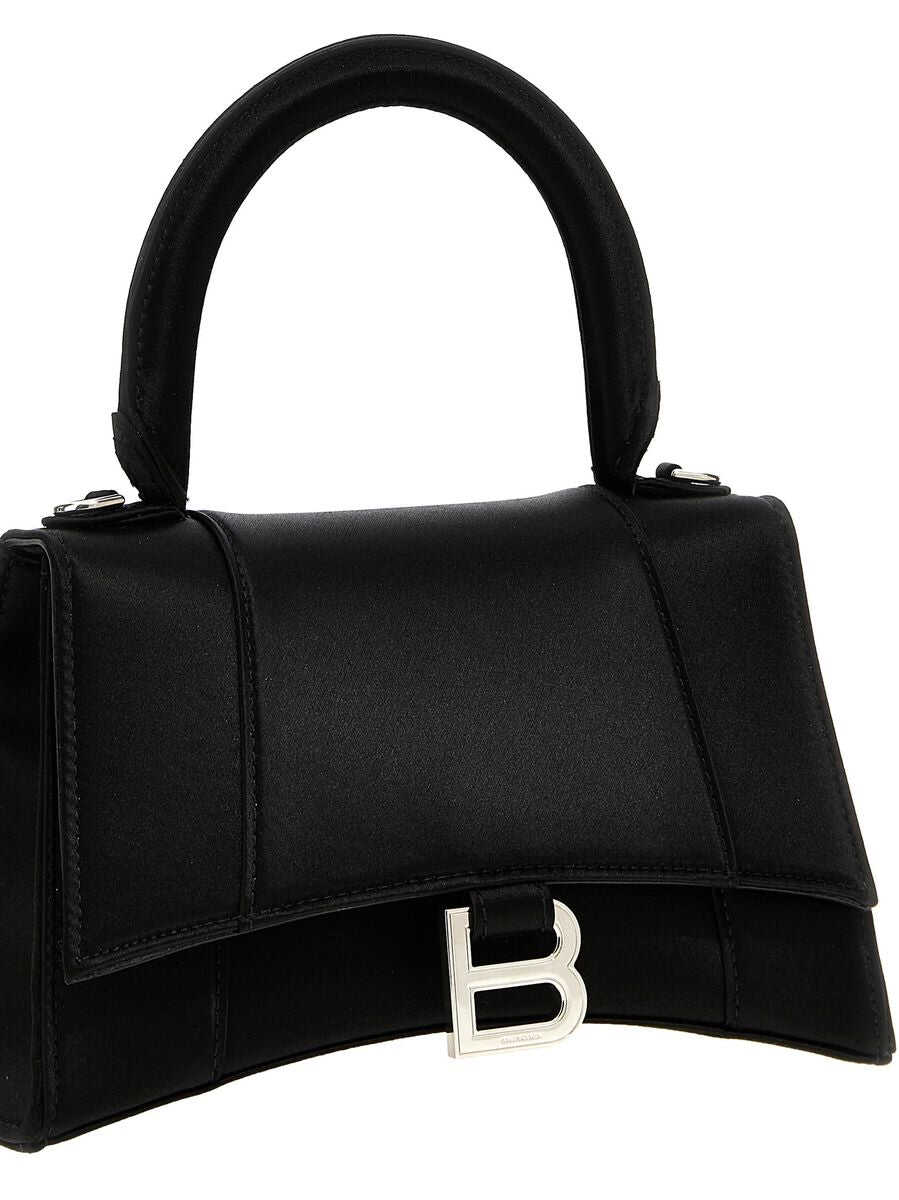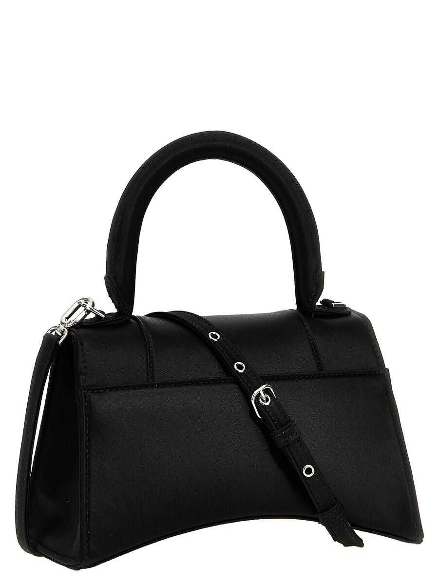 Black satin small Hourglass handbag Width: 22,5 cm Height: 14 cm Depth: 10 cm Handle height: 9 cm Min shoulder strap length: 20 cm Max shoulder strap length: 57 cm