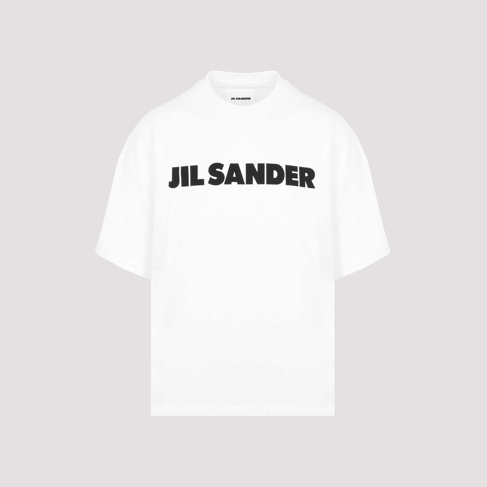 Jil Sander Porcelaine Cotton Logo T-Shirt. Porcelaine Cotton, crew neckline, short sleeve, printed logo on chest in black, straight hem.