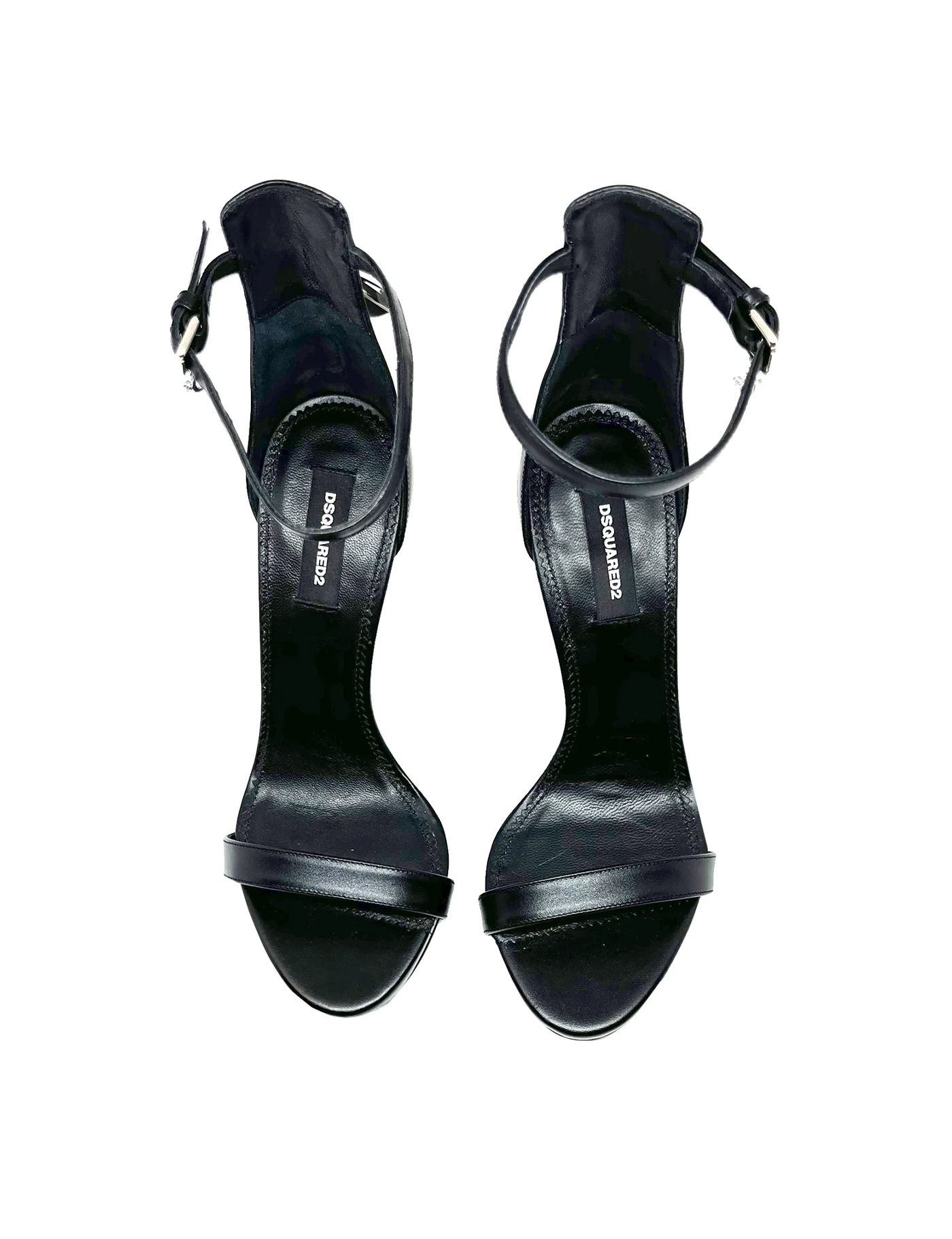 Step out in style with these DSQUARED2 Leather Sandals. The 100% calf leather material, ankle side buckle fastening, and open toe design make for both comfort and elegance. With a 12 cm heel and sleek black color, these sandals are perfect for any occasion. Show off your fashion sense with the DSQUARED2 brand and logo detail on the sole and insole. Shop now and elevate your shoe game!