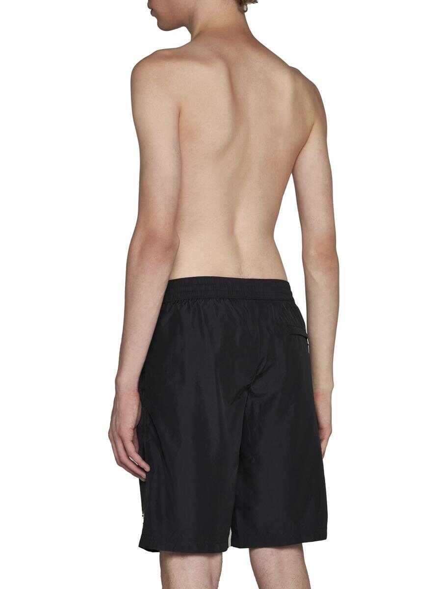 Dolce & Gabbana’s long-length swim shorts in black nylon featuring elasticated waistband with adjustable logo-tape drawstring, side pockets, front logo plaque and back zip pocket.