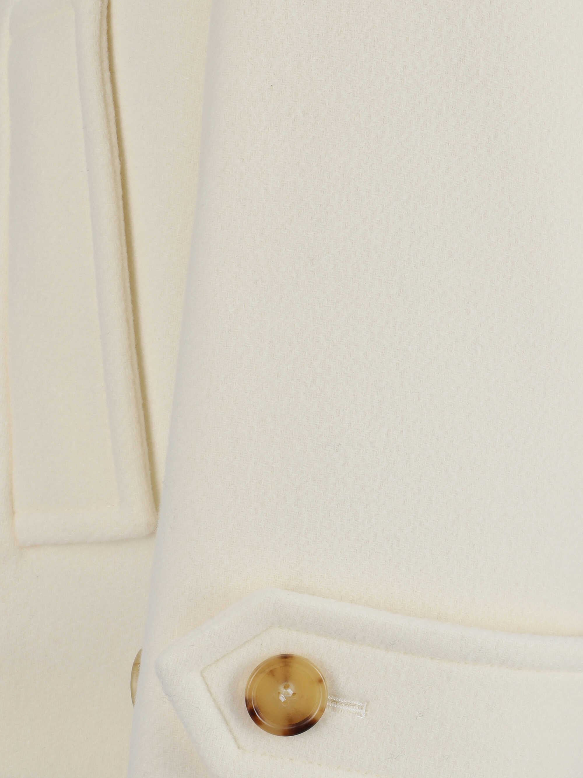 Virgin Wool Coat fby Chloé, short model, wide classic lapels, two welt flap pockets on front, double-breasted button closure, adjustable button cuffs, monochrome design, regular fit.