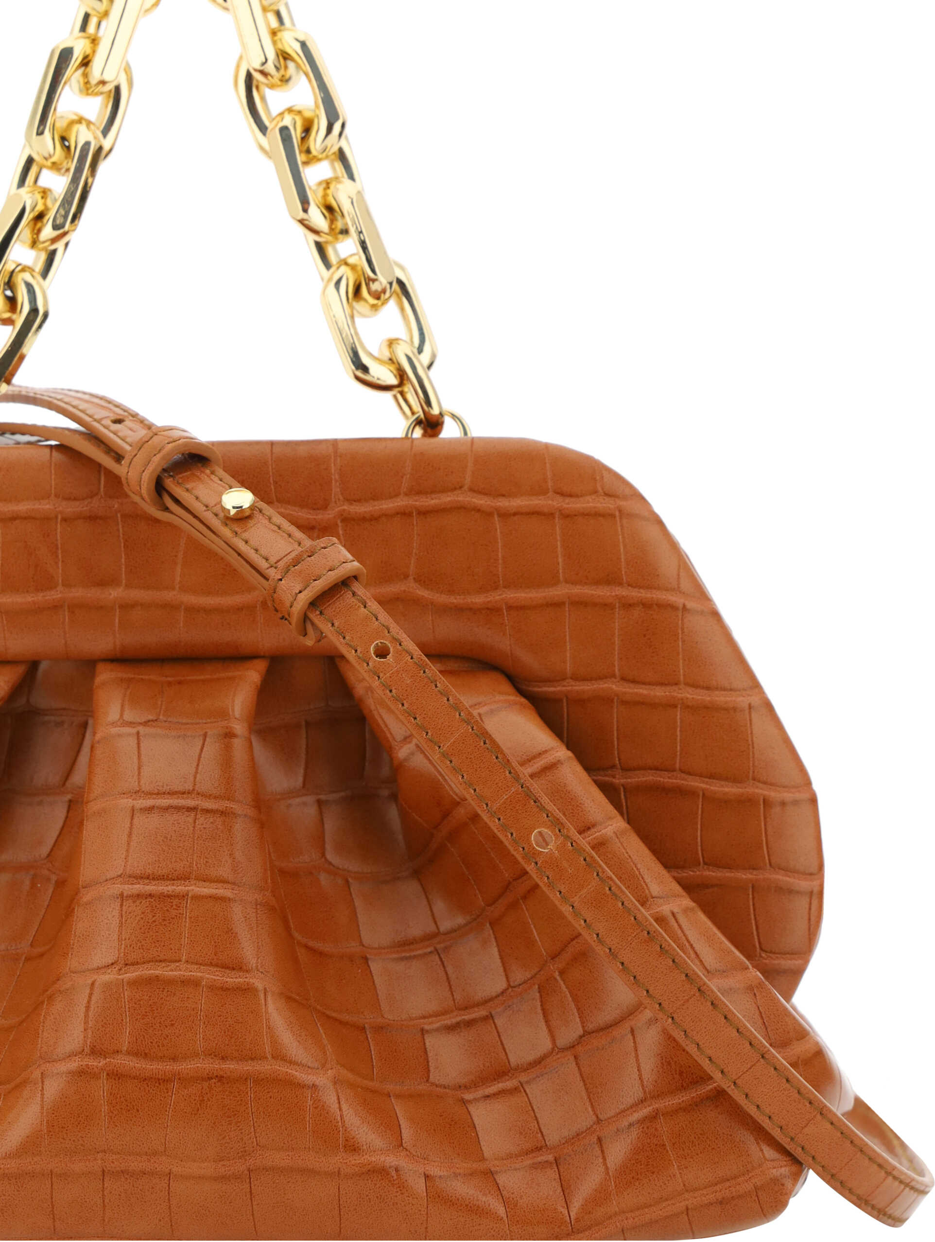 Vegan Leather Tia Croco Handbag by THEMOIRè, magnetic snap closure at top, single interior compartment, short chain strap, removable and adjustable flat shoulder strap, croco-effect leather design.